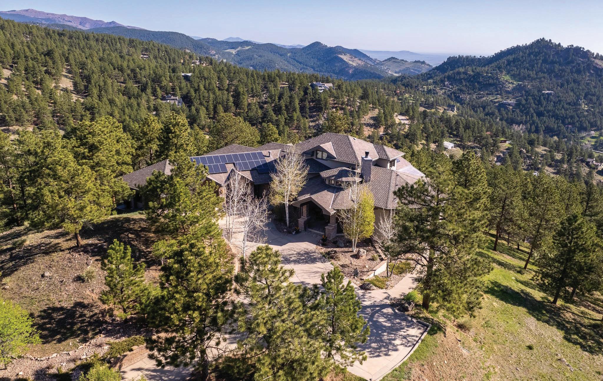 Grand yet intimate, 250 Pine Tree Lane combines fine living with mountain home appeal. A wellbuilt custom home just 7 minutes from Broadway that feels magically worlds away, it redefines Boulder living from its hilltop location in the alluring Pine Brook Hills community. Highlights of this property are the Open Floor Plan, Sweeping Views, Main Level Primary Suite, ease of indoor/outdoor living with covered deck to enjoy year round, the amazing driveway and 3 car garage. The Mountain & Valley Views are Unmatched: see Boulder twinkle by night; watch the sun rise over the surrounding valleys of Sunshine Canyon, Left Hand Canyon and across to Longmont. Coming up the tree-lined drive, you will know you have arrived somewhere special. This unique 2.5-acre site has been thoughtfully landscaped/hardscaped to create the ultimate mountain oasis with unparalleled accessibility - flat driveway fits 6 cars, 3 car attached garage and wonderful mudroom entrance. Stepping in, see sweeping views, floor-to-ceiling native rock fireplace centering a great room and beautiful hardwood detail. Gourmet kitchen built for entertaining with 6 burner range, solid alder custom cabinetry, walk-in pantry & delightful breakfast nook with views. Main level primary suite is a true retreat with its own balcony, elegant bathroom with massive steam shower, soaking tub with breathtaking views, and oversized walkin-closet w laundry. This home has amazing flexility - upper level loft is a perfect home office or private retreat while the lower level & great room beg for cozy nights with board games or listening to your favorite vinyl. Comfortably fitting a fine bar, gas fireplace, deck, 3BR, 4BA & music room, the lower level has its own appeal and vibe. Owned solar panels, radiant heating & new utilities welcome you to live with ease. See what fine mountain living looks like at 250 Pine Tree Lane.