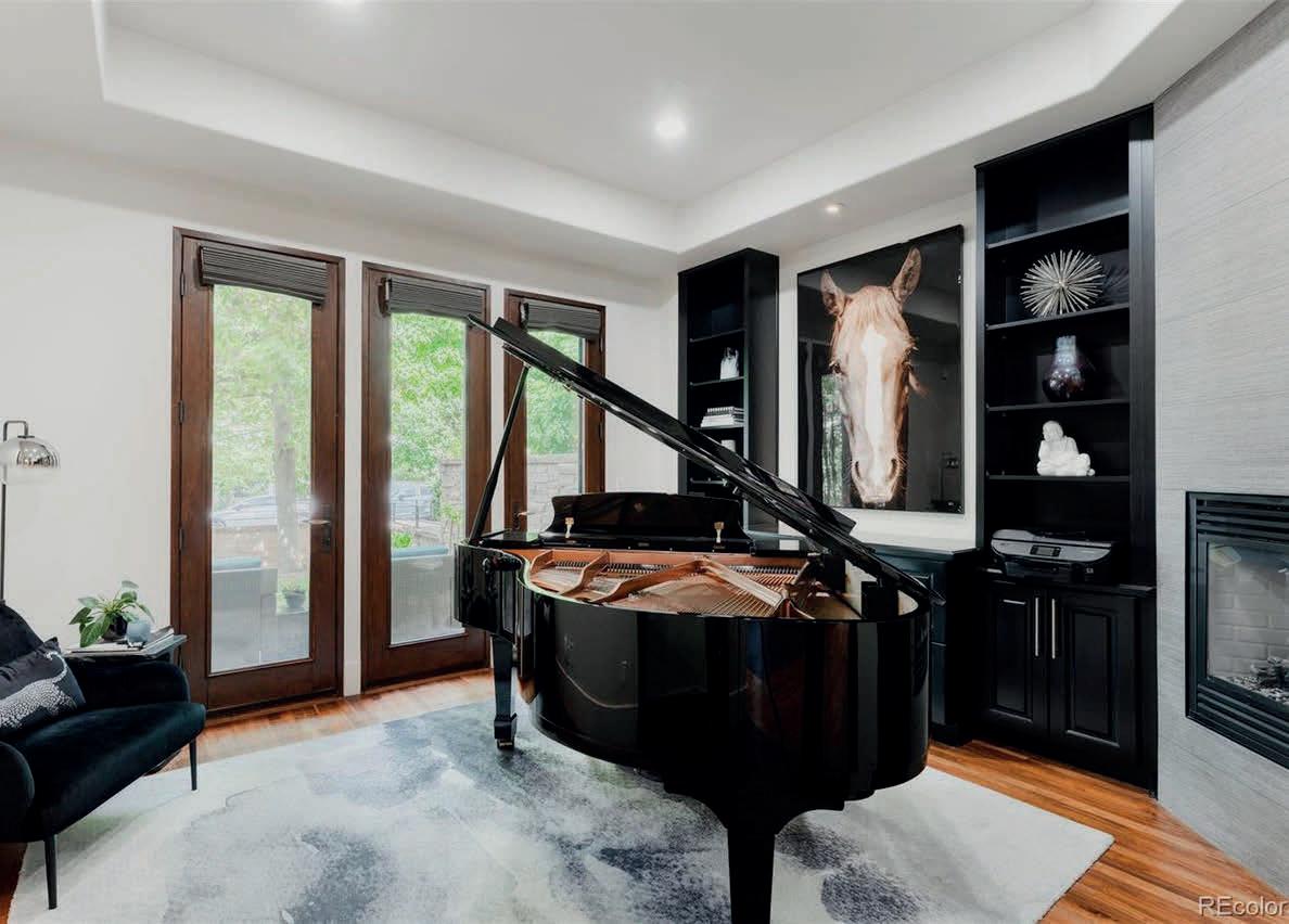Welcome to 2442 Champa, the epitome of urban living, located in the heart of historic Curtis Park in Downtown Denver. The property is conveniently located within walking distance to many of Denver’s Michelin Star restaurants, Coors Field and world class shopping. The entry of this immaculate 4 story tall end unit brownstone boasts 30-foot-high ceilings, custom designer chandelier and natural oak flooring throughout. Just a few steps down is a non-conforming 3rd bedroom/office with an ensuite 3/4 bath, a glass tiled fireplace and private entrance to the front patio. The main living area showcases a spectacular gourmet kitchen with a large island, a wine fridge, high-end stainless-steel appliances, with extensive storage and an expansive pantry. The adjacent dining room easily accommodates a large dining room table and will be illuminated with additional designer lighting. The living room floor to ceiling tiled gas fireplace will set the perfect backdrop to entertain or to enjoy a night in. One flight up and you will find 2 spacious bedrooms, the primary is large with lots of natural light, a granite finished ensuite and large walk-in closet. The secondary bedroom has a floor to ceiling window and a full ensuite bath with upscale finishes. The rooftop level is a STUNNING bonus/ entertainment/media room with a full glass remote controlled garage door that opens to the private deck and provides expansive views of the Rocky Mountains, cityscapes and the Rockies fireworks. Enjoy the views at the wet bar with wine fridge, dishwasher, ice maker refrigerator and 3/4 bath. There are 2 private garages for this property, the first is just off the alley, the second is an underground garage, both are secure with direct access to the home. Over $100K in recent upgrades to this one-of-a-kind show stopper!