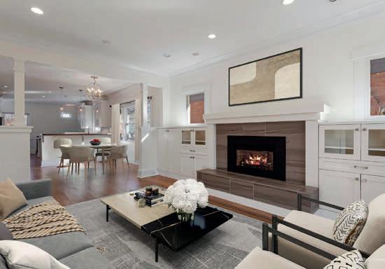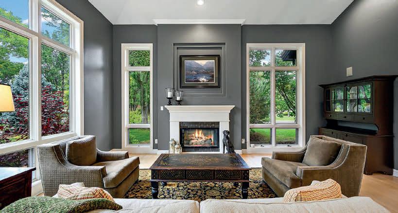 • Primary suite with spacious bedroom, two-sided fireplace, two walkin closets, separate reading area, and spa-like en-suite bathroom