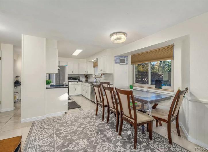 Your dream home is finally here! Welcome to this beautiful residence in Denver! Greeted by a fresh exterior paint job, this home exudes a sense of rejuvenation and charm. Discover the inviting front porch, a perfect spot to sip your morning coffee or watch the sunset. The charming interior offers new wood-look flooring and new blinds, providing both privacy and a harmonious ambiance, complemented by the freshly painted walls in a soothing designer palette. The formal dining area offers an elegant space for meals and memories! The kitchen boasts stainless steel appliances, tile backsplash, freshly painted cabinets, ample counter space, and an adjoining butler area directly behind it ensuring you have all the room you need for culinary adventures. Adjacent. to it, the family room becomes an oasis of warmth and relaxation with its focal-point fireplace, perfect for those chilly evenings. Walkout to the spacious backyard which includes beautiful shade trees, green grass, flowering shrubs and more than enough room for children to play, plus several areas for your own garden. A large, covered patio for those hot summer days and great for al fresco dining or weekend barbecues! Retreat to the main bedroom comprised of a private bathroom with dual sinks and a cozy balcony. Three additional goodsized bedrooms are also in the same level as the primary bedroom. Perfect for a growing family or room for company to stay while visiting. The home has a new sewer line and new window well grates, ensuring smooth and trouble-free functionality for years to come. What are you waiting for? This value won’t disappoint!
