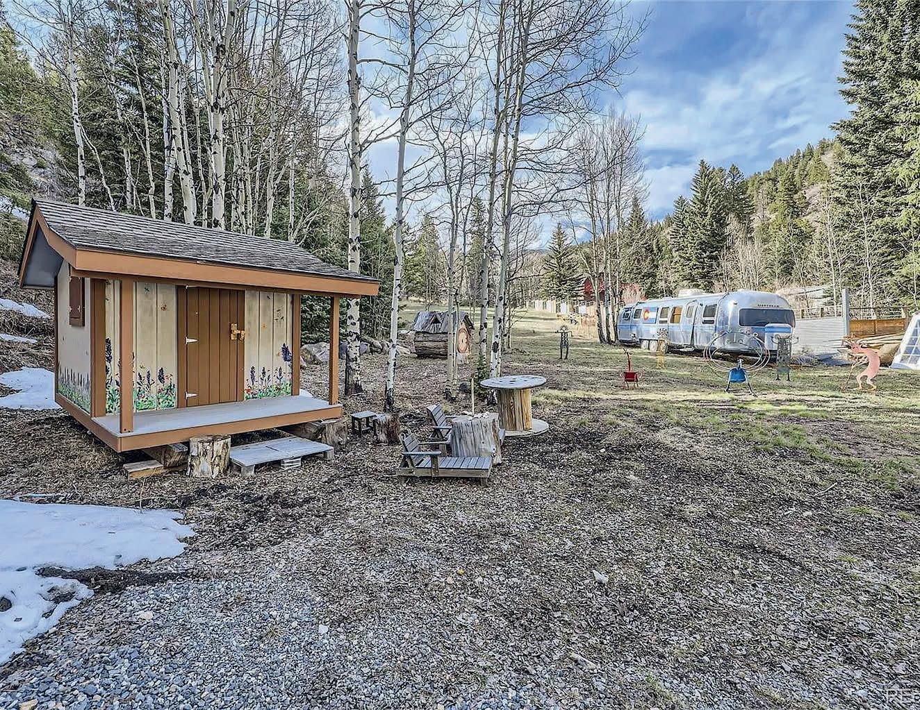 This is your opportunity to own a custom log home on 9.97 acres of land that has both the Sacramento Creek running through it, and two private ponds right out the back door. This log cabin’s exterior was designed to blend into the Colorado wilderness, while the interior was crafted with an eye for European charm and finishes. The large living room/dining room/kitchen combination is the perfect space for friends and family to gather. The living room fireplace provides both additional heat (the entire house has radiant heat) and is a lovely focal point. Two comfortably sized bedrooms complete this level of the house, and a full sized bathroom is nearby. Upstairs there is a game area, a storage closet, and an oversized, light filled primary bedroom that has an en-suite bathroom and a private deck. Across the road from this house is a National Forest, making this spot private and uncrowded. The ponds, the pines, the willows...this magical home will NOT disappoint.