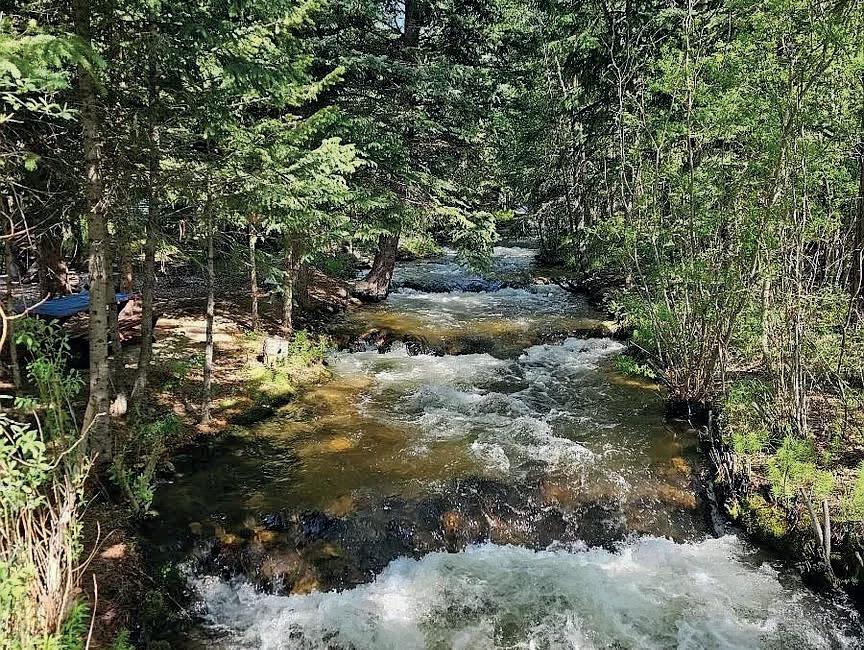 The exterior showcases stunning custom log construction and a durable metal roof. Enjoy serene moments on two south-facing balconies overlooking the river, or benefit from the wholehouse water filtration system. The property abuts forest service land, offering breathtaking views and abundant wildlife.