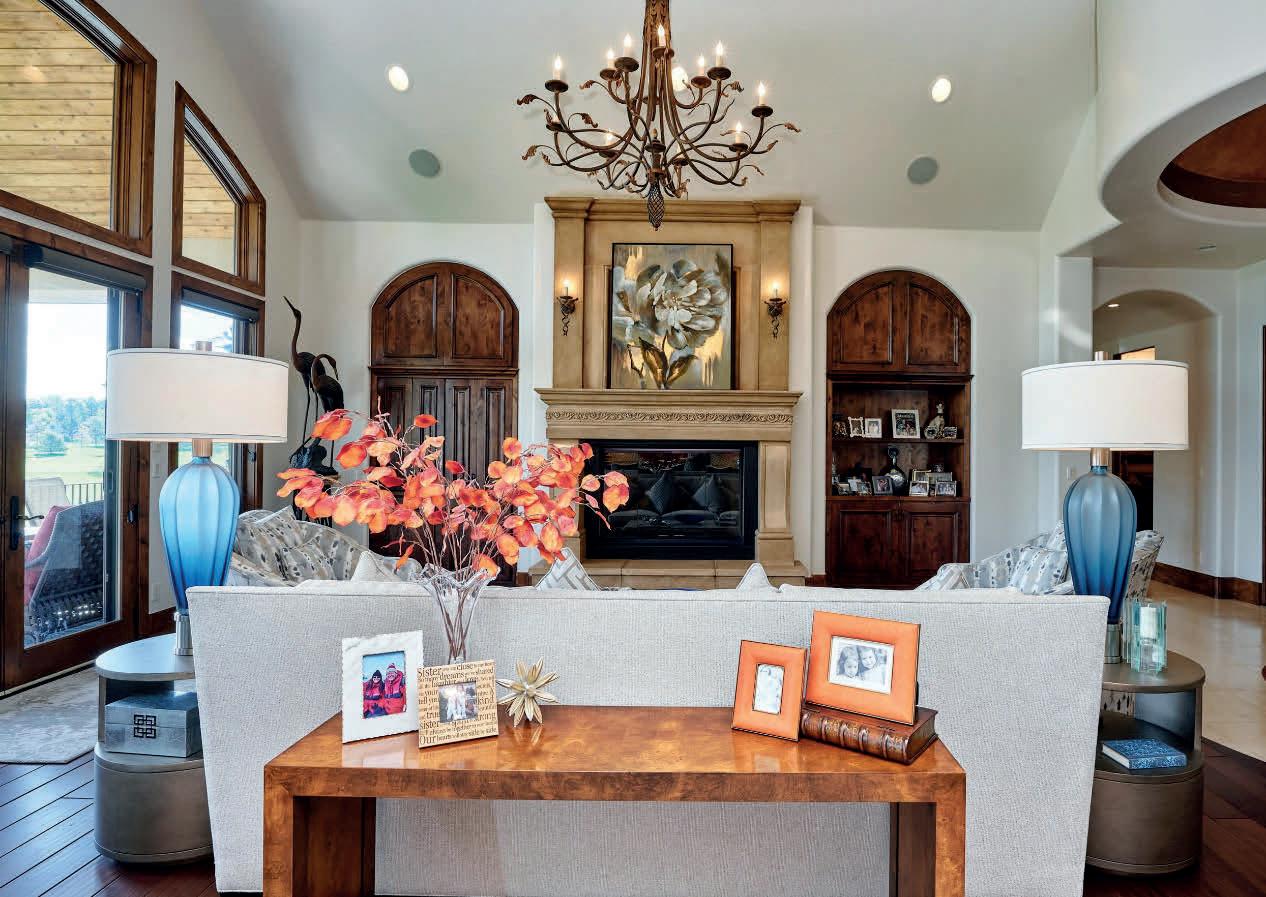 beauty. The pantry with barndoor includes a coffee/tea bar and plenty of storage. An adjoining laundry room has custom cubbies and is a passthrough to the 5-car garage with RV height bay. An upper-level bonus room with a full bathroom is perfect for nanny quarters. The master bedroom has a beautiful accent wall, wall-mounted gold lamps, a door to the deck’s spa area, and an adjoining bathroom. Heated tile floors, 2 closets, a contemporary soaking tub, and an incredible steam shower add to the luxury of this private oasis. Two additional bedroom suites and a half bath complete the main floor. The basement includes a 2-level theatre, pool and poker table areas, family room, and a spacious bar with quartz counters and a full-sized fridge. A full bath, 2 beds, multiple storage areas, and space for a wine room create flexibility on this level. For luxury living in a premier location, experience 7006 S Espana Way in Centennial. Landscaping to be completed by the end of July.