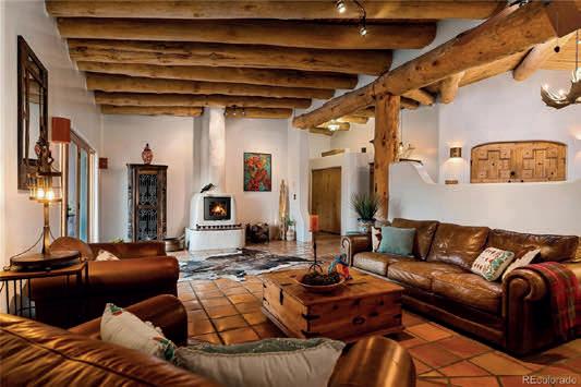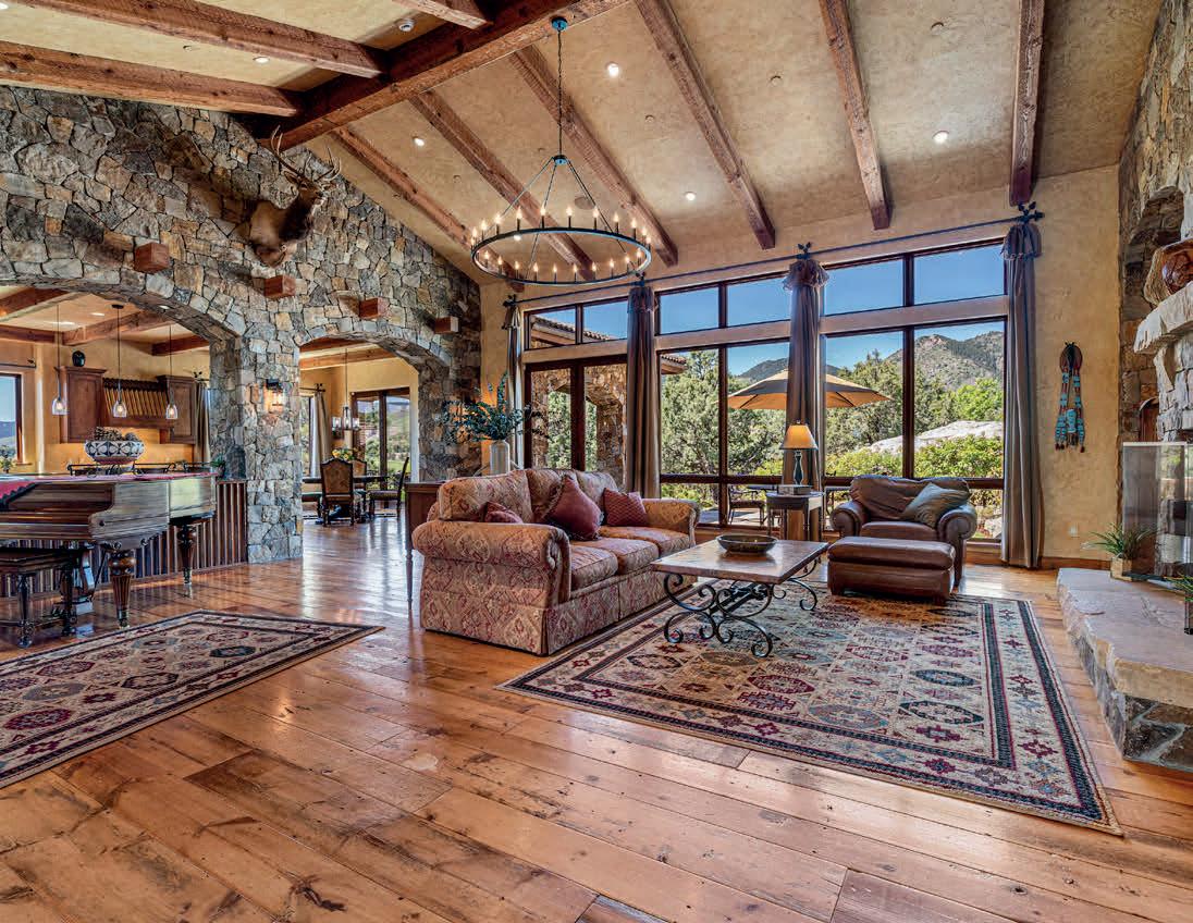 5 BEDS • 7 BATHS • 10,037 SQ FT • $9,000,000 Los Cielos Ranch is located in the north central mountains of New Mexico. It is approximately 10 miles south of the Angel Fire Resort. The Angel Fire Resort offers a great family ski resort with New Mexico’s only two high speed lifts and 67 ski trails. The Angel Fire Resort also offers an 18 hole PGA Golf Course, tennis center and country club with bar food and fine dining. Angel Fire also has a full service airport with a 8,900 foot runway capable of accommodating a Lear 45. Taos, NM is about 35 miles away and offers eclectic shopping, art galleries, museums, a world renowned ski area, a modern hospital and a full service, newly expanded jet accessible airport. The mountain towns of Red River, and Eagle Nest are also easily accessible. Red River has a nice ski area, fishing and year round entertainment. Eagle Nest is known for Eagle Nest Lake and the fishing in Cimarron Canyon. ACCESS Los Cielos Ranch is accessed by NM Highway 120. It has three electronic gates; one from state maintained NM Highway 120, one from County maintained Colfax County Road B-38. The final gate is from Mertz Place which is a road within the Hidden Lake Subdivision. Los Cielos includes two lots within the Hidden Lake Subdivision. HOA dues for Hidden Lake pays for road maintenance and fish ing in Hidden Lake. Hidden Lake is a private lake and notorious for trophy trout. IMPROVEMENTS Los Cielos Ranch is a luxury recreational retreat. The main structure is a log lodge design. It was built with timbers brought from British Columbia. This home has a very private setting with exceptional views to the west ranging from Pecos Wilderness to the Wheeler Peak Wilderness. It also has a great view of Black Lake where the mini-series Lonesome Dove was filmed. It has multiple living areas including the entry living area with massive vaulted ceilings highlighted with spectacular views and two rock fireplaces. The gourmet kitchen has sub- zero appliances, granite countertops, working island and access to a large pantry area. It also has a sitting area with its own fireplace. The main house has three bedrooms, three full baths and two half baths. All the bedrooms have in-suite bathrooms. There is also a separate one bedroom, one bath apartment above the three-car garage. The master suite has a huge vaulted ceiling, fireplace and a private patio accessed from the bedroom or bath. The master bath has two vanities, center island with drawers, soaking tub and shower with access to spacious “His and Hers” walk-in closets. The seven fireplaces located within the main house are all masonry construction with gas available to each for wood fire starting or conversion to gas burning fires. Other rooms in the main house include two office areas, wine cellar with tasting area, workout area, private storage, maintenance storage areas on the lower level and air-lock service entry for apartment, garage and main house. The main house has extensive landscaping with a large patio with its own fireplace and grill area. The patio area is highlighted with a re-circulating waterfall, creek and pond water feature. The landscaping spectacular luxurious log lodge. Logs are red cedar brought from British Columbia. There is a guest house located on the westerly side of the property with bgood access off of Colfax County Road B-38. Fishing at Hidden Lake as well as private spring fed pond 0n the property. There is also another small pond located on a year round creek on the SE portion of the property. Elk permits. Full information package available on request.