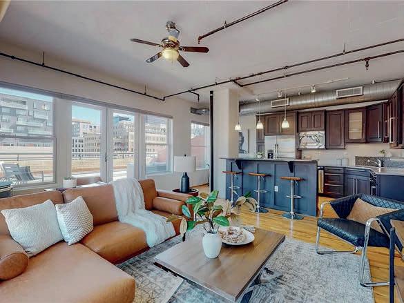 Experience urban living at its finest in this premier corner unit at Metropolitan Lofts in Denver’s Golden Triangle. This 2-bedroom, 2-bathroom home spans 1,388 sq ft, featuring an open floor plan filled with natural light, a chef-inspired kitchen with stainless steel appliances and granite countertops, and two large terraces. Enjoy 22’ ceilings, floorto-ceiling windows, a luxurious primary suite with an ensuite bathroom, and two deeded underground parking spaces—all in a prime location near downtown Denver’s top amenities.