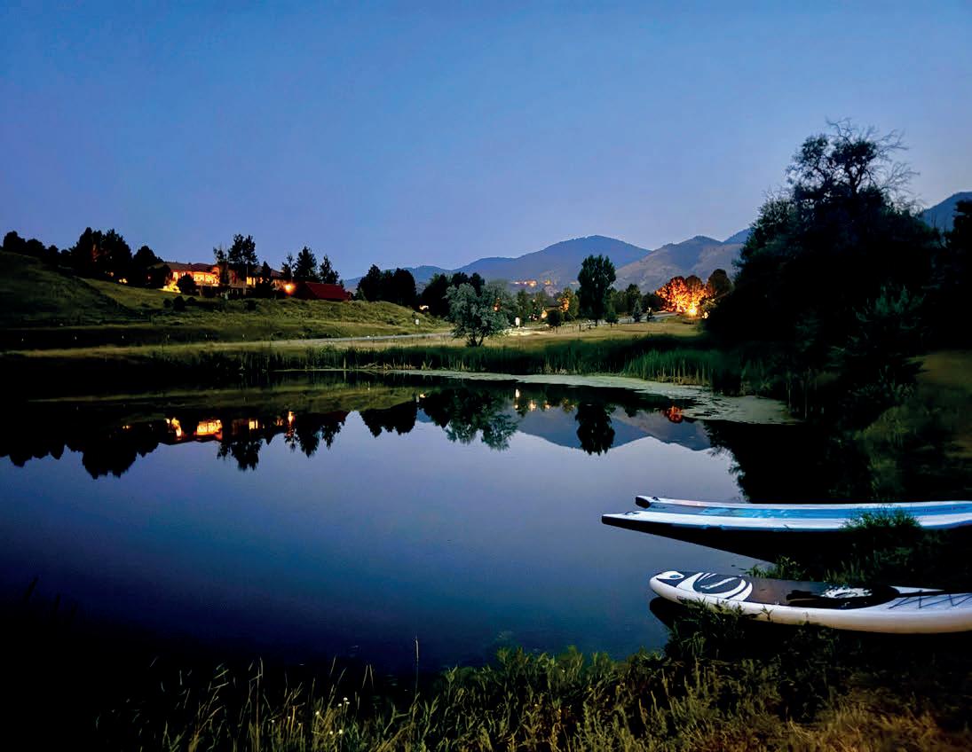 5575 Saint Vrain invites, embraces, soothes and delights at every turn. 10 acres of birdsong and tranquility nourished by 10 shares of senior WATER RIGHTS with year round freshening flows and a 1/4 acre lake abutting 60 acres of private open space. Enter the gated, pear tree lined driveway and unwind at your very own English garden estate coupled with an exquisite, modern refined rustic home. Beckoning you inside are the soaring, vaulted ceilings, warm oak floors and vast windows streaming with sunlight and sparkling lake views. The flickering see-through fireplace warms you inside and out from both the cozy living room and the enviable library adorned with a charming cocktail nook. Cooking is an absolute pleasure in this world class, modern custom kitchen featuring stunning quartzite countertops, hand forged metal cabinets, award winning Crystal Cabinet lowers and BlueStar range. Seamlessly entertain on the back patio enveloped in luscious greens, brilliant blooms and endless open space. Settle in for a movie in the den with its own separate entry. Your upper level sanctuary frames picturesque blooms and the lake, lush lawn and 1000 ft of winding river. Enjoy your spa-like bathroom with radiant heated floors, MTI Stone shower basin and 6’ Juliet soaking tub w/ Graff filler, marble subway tile and custom cement trough sink. In keeping with the relaxing, clean living, energize your morning in the huge day-lit basement gym. Soak in the sunset from your apple orchard swingset. Grab a bike from the Motoshed and ride your private trails just beyond the lake. Roast marshmallows at the fire-pit or sip coffee and watch the sunrise. Throw a fishing line into the lake. Start your mini four-leggeds farm on the heavenly grasslands and lawns, 7+ acres of which are irrigated with the plentifully flowing water rights by your new Rainbird “golf course”/commercial grade in-ground sprinkler system. Bike to Mountain Fountain for some coffee and quiche. Every day can be paradise when you live at 5575. Seize the day and this amazing opportunity.