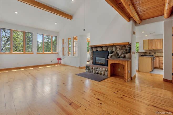 Rare large acreage property located on the historic BlueBird mining claim. Five minute drive to downtown Nederland, 10 mins to Eldora Ski Resort. This home is flooded with natural light throughout which perfectly captures the wood floors to completely immerse you in the mountain vibes. Walk out your door to destination trails for hiking, skiing, mountain biking, motor biking, and snow shoeing. Enjoy amazing views and a personal Aspen grove on the 8.9-acre lot from your massive deck or indoor balcony. Fenced portion of the yard with HIGH 7 ft fencing for even the most daring escape artists. See moose, elk, deer and more from the windows and deck! For mountain bikers this home is a haven. Pedal out of your yard directly onto the Magnolia trail system! Hiking trails across the street. Recent renovations have made this home complete. The timeless chefs kitchen featuring high end appliances including a Thermador dishwasher, Dacor range with cast iron griddle and deep LG French door fridge. New furnace, hot water heater & luxury Electrolux washer!! Heavily insulated throughout to add heating efficiency and deter any noise from entering the home. Basement was fully finished out with all work permitted through Boulder County in 2024 which now includes a massive open space waiting for your imagination and a large private office with expansive mountain and forest views. High speed WiFi with Starlink installed and ready to run in day 1. (Avg 125-275+ mbps download) ATT-compatible mobile booster installed. Natural gas and electricity by Excel. Stop dreaming and start living the mountain life today!!