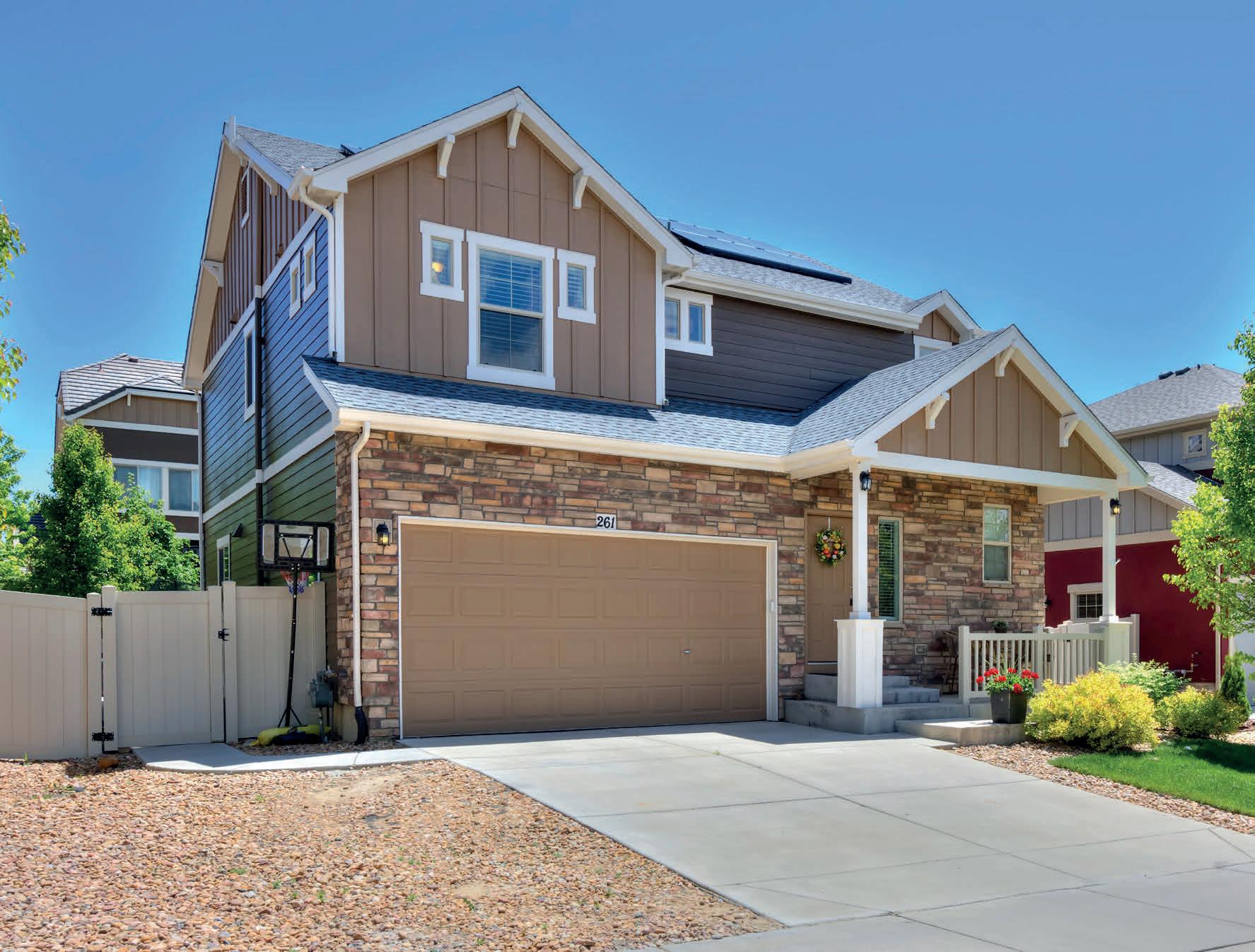 Classic and timeless describe this Parkwood home located in Denver’s charming Central Park neighborhood. Upon entry, you’ll be delighted to discover a spacious foyer that opens into a sundrenched, open-concept main floor living area adorned with hardwood floors and elegant crown molding throughout. Step upstairs to find the large secondary bedrooms, a convenient laundry room and a luxurious primary suite. The basement provides additional living space with a stacked stone fireplace and kitchenette. This level also features a home gym, an extra bedroom, bathroom and lots of storage space. The stunning backyard is an entertainer’s dream featuring a built-in grill, hot tub and firepit. This home is equipped with a Tesla Solar System that was designed to offset nearly all the home’s energy usage. All of this is conveniently located next to top-rated schools, playgrounds, parks, trails, shops, restaurants & the newly opened Pearl Market.
