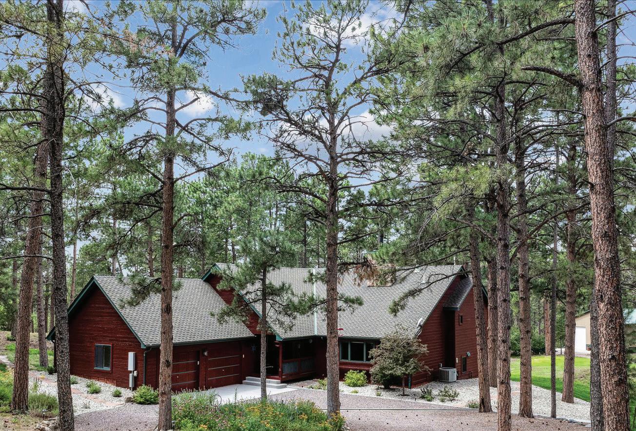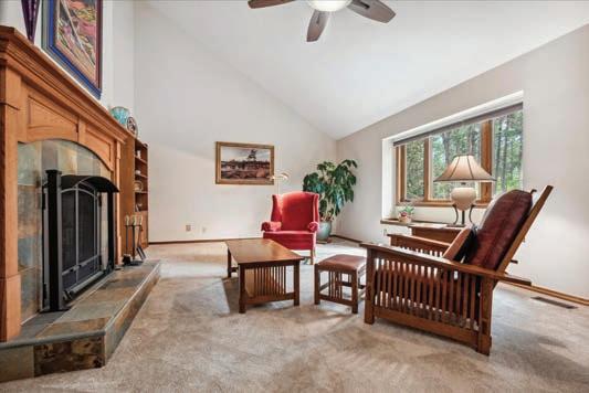 Once in a blue moon, a gem like this pops up for grabs. This immaculately maintained modern mountain-style residence is situated on 6.4 acres of park-like woodland, o ering a tranquil setting with plenty of privacy. Step inside the house and the sense of living in a vacation retreat prevails. This impeccably kept 4-bedroom, 4-bathroom residence showcases an upgraded contemporary kitchen with top-tier appliances, updated bathrooms with tile floors and granite countertops, red oak floors, high end carpet, 2 fireplaces (gas and woodburning) and best-of-brand new windows. Red oak and cherry custom custom woodworking is showcased on the stairway and in cabinetry and shelving in the inviting library. Outside, a detached 1,440 sq ft heated workshop is equipped with a custom built 20 ft workbench with extensive cabinetry, water, oversized automatic doors and 220/30 amp service. Meander along natural stone pathway to a charming, updated shed, ideal for gardening or storage. Other noteworthy property features include expansive decking (pre-wired for hot tub), surrounded by an idyllic natural landscape plan that is both visually appealing and water conservant. Hundreds of majestic trees grace the property, maintained and trimmed for fire mitigation. The 6,600 ft elevation o ers a cool respite from city heat. The property is move-in ready, o ering a unique combination of comfort, style and gracious living.