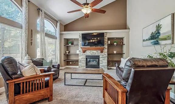 This beautiful multi-generational home in Heritage Greens sits on a large corner lot near the clubhouse, pool, and tennis courts. The welcoming foyer leads to a kitchen with new appliances, quartzite countertops, and a large pantry, perfect for entertaining. The main-level primary bedroom features a fireplace, patio access, and a spa-like bathroom with a walk-in shower. Upstairs, a loft with mountain views connects two bedrooms and a Jr. Suite. The finished basement offers additional storage and a bathroom. ADA-friendly features, new carpet, and fresh paint make this home truly unique.