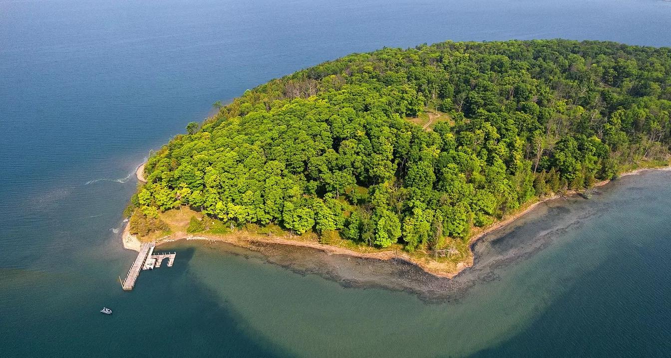 3 beds | 3 baths | 3,000 sq ft | $3,750,000 A truly spectacular island paradise awaits with this custom built 3 bed/3 bath Adirondack style home perched on the pristine Peck Island coastline! Accessed by boat from the north shore of Drummond Island, Peck Island comprises of more than 60 lush acres of unspoiled property, with glittering water views for miles. The main house was built for year-round use and boasts an open layout adorned with fine Tamarack hardwood floors, custom design elements, and multiple built-ins. The living room hosts vaulted ceilings, a cozy flagstone fireplace, and enough built-in shelving to house a large personal library. The island kitchen features custom tile backsplash and a farmhouse dining island with a butcher-block top. A multitude of windows showcase unobstructed water vistas. Down the hall, 2 roomy guest bedrooms boast charming details and en suite bathrooms. Each bathroom in the home is bedecked with whimsical Ann Sacks artisan tile-work. Breathtaking views of Potagannissing Bay continue into the sizable Primary suite, or from the attached and enclosed sleeping porch adorned with electric shades. Rounding out the home is an adorable mudroom and a designated laundry with abundant storage. The expansive decking is constructed of Ironwood- designed for maximum durability and weather resistance. A portico attaches the heated, single-stall ATV shed, and an additional heated 2.5-car detached garage and pier shed offer plenty of storage space to protect any Up North “toy”. There is a detached heated and air-conditioned art studio with sweeping water views on the North side of the home. Nearby, fenced gardens with raised beds and automatic watering systems maximize sustainability. The property itself features lush foliage, ATV trails, and an 80’ pier with viewing deck to take in views of Ashman, Rutland, and Drummond Island. A floating dock with the capacity for 4 boats is connected to the pier. This is a once in a lifetime property, to be enjoyed for many generations to come!