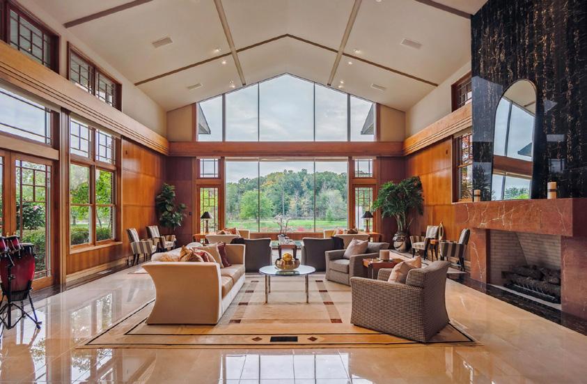Significant restorations enhance this iconic English Manor designed by Alfred Hopkins & Associates. The historic home has a stucco exterior, slate roof, original carved woodwork, hardwood floors, and decorative carved limestone throughout the grand rooms, while the stunning two-story library has a barrel ceiling.