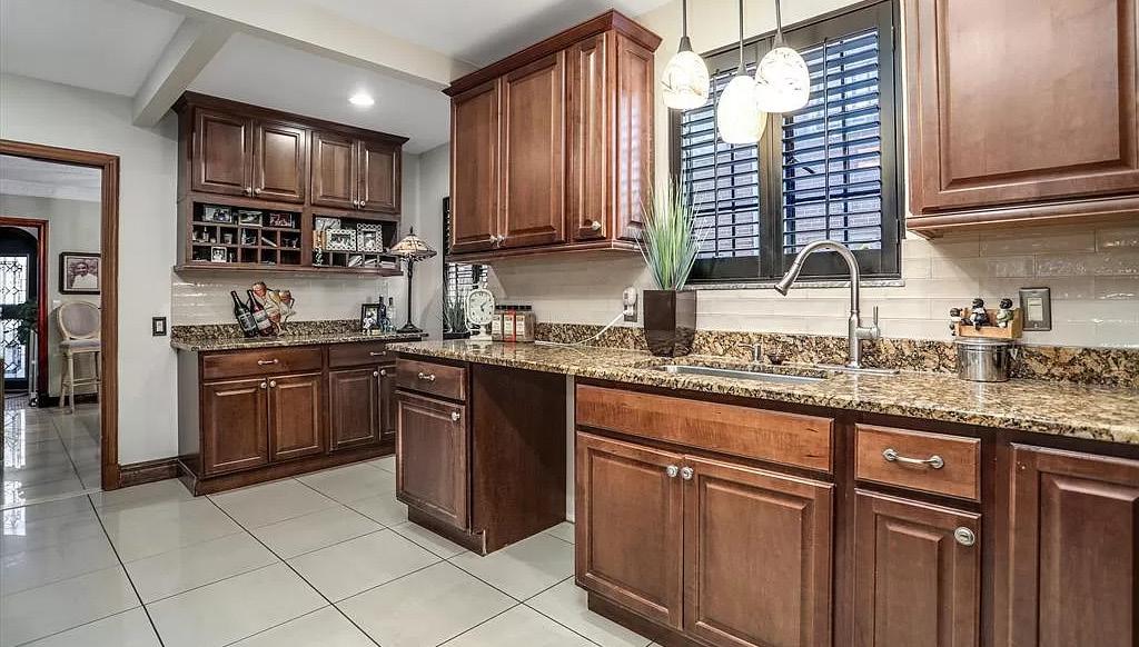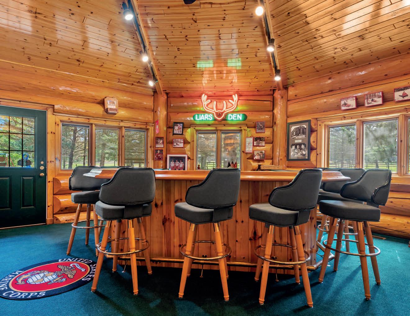 The outdoor living experience is further elevated with an enclosed patio equipped with a bar. Whether hosting gatherings or savoring private