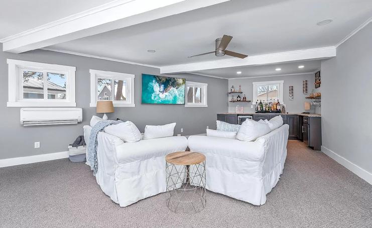 The second level is dedicated to a spacious primary suite, providing panoramic views of the crystal-clear waters that define Clark Lake. Wake up to breathtaking sunrises and fall asleep to the gentle lapping of the waves against the shore.