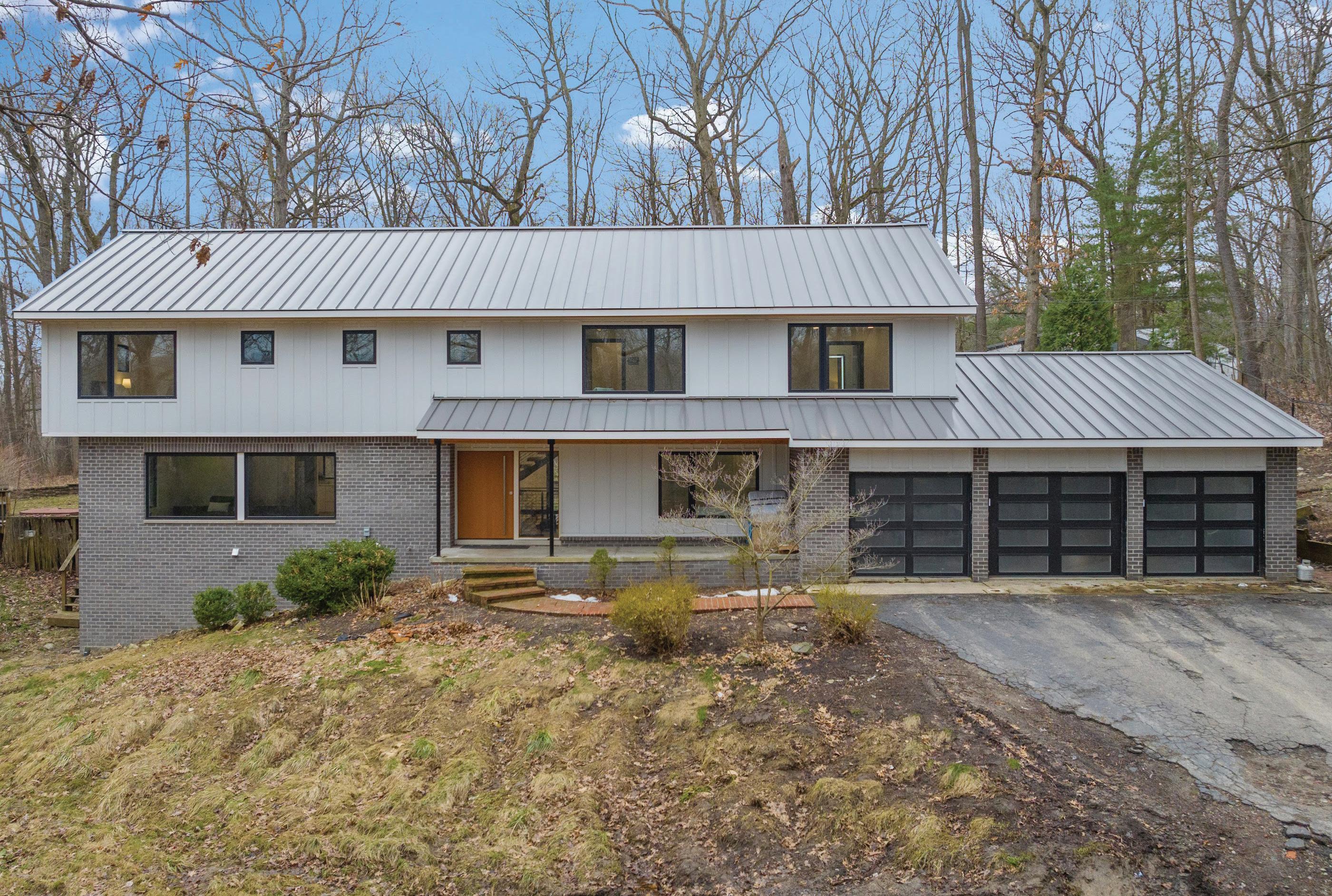Contemporary design colonial with mid-century modern vibes on a private 1.05 acre overlooking wooded ravine. Home has been recently completed and features a stunning open concept floating staircase to all 3-levels; Exceptional designer finishes throughtout; Gourmet island kitchen with commercial grade appliances; Large windows in every room offering spectacular views of the beautiful woods surrounding home; Wide plank custom vinyl flooring throughout entire home; Custom lighted mirrors with designer plumbing fixtures in all bathrooms; One-of-akind magnetic front door; Custom garage doors. Seller has just completed home and has not had the time to finish landscaping in the front yard or around built-in pool (this will be the Buyers responsibility and house is priced accordingly).