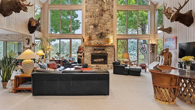from every window. Relax in the theater room or screen porch with a fireplace overlooking the lake. The main house offers 5 bedrooms and 3.5 bathrooms in addition to an incredible great room, private office, craft room, theater and more. Have guests stay in the in-law suite which offers a private entry, bedroom and full bath. Over 2000 Sq Ft of storage for all of your toys between the 3 attached garages. The property also includes a horse stable and old camp house. Unlimited possibilities await you as you consider this one of a kind offering as your new house, northern getaway or corporate retreat.