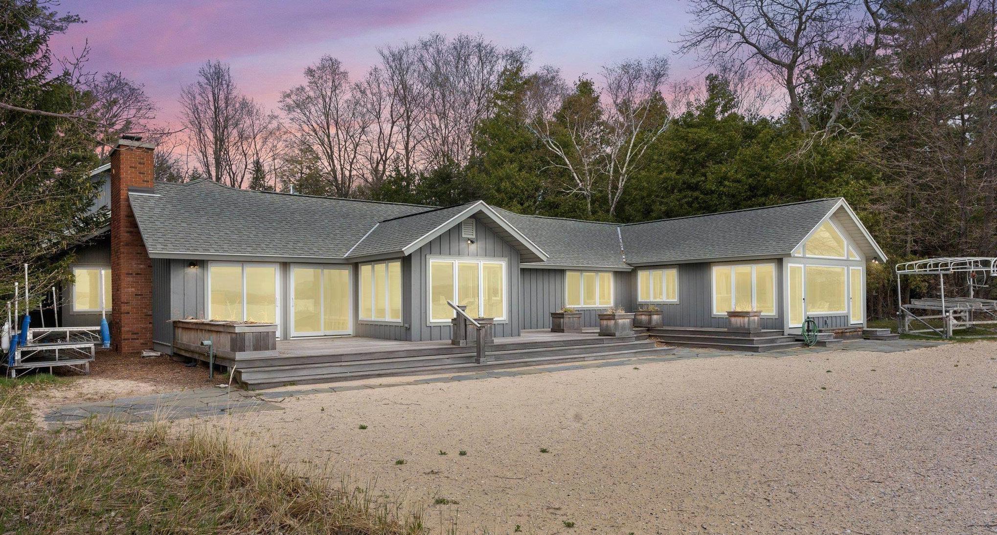 The property he recently sold is a beautiful 3-bedroom, 2.5-bathroom home with 2,660 sq ft of living space, featuring main floor living and 100’ exclusive private beachfront on the Old Mission Peninsula. This exquisite home boasts breathtaking panoramic water views from nearly every room, oak floors, cathedral ceilings, skylights, and a stone gas fireplace, adding warmth and character. The gourmet kitchen and dining area open to a stone patio surrounded by meticulously landscaped gardens, perfect for sunset gatherings.