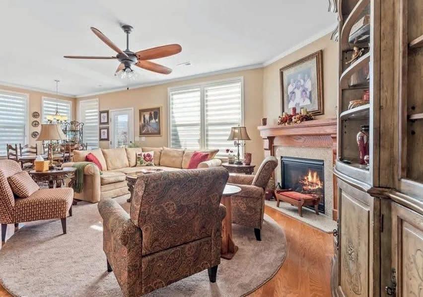 Welcome to this charming Del Webb home situated on a spacious corner lot, offering a perfect blend of comfort and convenience. This home has 2 bedrooms, 2 full bathrooms, and a well-designed floor plan spanning 1,735 sq ft, this immaculate residence exudes both elegance and functionality. Step inside to discover a thoughtfully crafted interior featuring a seamless flow between the living spaces, creating an inviting atmosphere for relaxation and entertainment. The heart of the home is the open-concept living area, highlighted by a cozy fireplace and ample natural light that floods the space. Prepare culinary delights in the well-appointed kitchen, equipped with modern appliances, sleek countertops, and abundant storage options. The adjacent dining area is ideal for intimate meals with loved ones or hosting gatherings for special occasions. Retreat to the peaceful master suite, complete with a private en-suite bathroom and a generous walk-in closet for all your storage needs. The secondary bedroom offers versatility for guests, a home office, or a hobby room, accommodating various lifestyle preferences. Outside, the screen enclosed patio provides a serene oasis for enjoying the sunny weather and al fresco dining. The meticulously landscaped yard surrounds the home, enhancing curb appeal and providing a tranquil setting for outdoor activities. Completing this exceptional property is the finished 2 car garage, offering added storage space and convenience. This community offers an indoor pool, community center and constant activities for 55+. With easy access to local amenities, major highways, and recreational facilities, this Del Webb home presents an unparalleled opportunity for gracious living in a desirable community. Don’t miss the chance to make this beautiful Del Webb home your own and experience the luxurious lifestyle it has to offer.