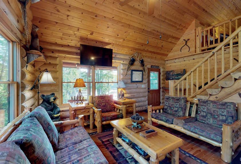 5 BEDS • 2 BATHS • MLS# 50116469 • $749,900 Escape to an exceptional lodge retreat situated on 80 acres of unspoiled northern wilderness. The Lazy Bear lodge, a stunning Hiawatha Log Home, exudes a rustic charm seamlessly blended with the comforts of home. It’s a dream getaway that beautifully combines old-world allure with modern conveniences. As you step into the lodge, an inviting open-concept main floor greets you with expansive cathedral ceilings. Adjacent is a comfortable dining area, inviting you to partake in hearty meals and delightful conversations. The well equipped kitchen, featuring hickory cabinets and gas appliances, boasts all the amenities to make your stay comfortable and enjoyable. The peninsula counter makes for great extra seating! The main level also features two spacious bedrooms and a full bath. The loft area, accessible by charming wooden stairs, provides additional sleeping space for four, making it an ideal spot for kids or guests. Immerse yourself in the ambiance created by floorto-ceiling windows, letting in an abundance of natural light that enhances the beauty of the wooden interiors. As you relax on the front or rear porch, nature puts on a show with wildlife freely roaming the vast property. The lodge is equipped with the impressive Starlink Satellite internet, keeping you connected to the world. For power, there is a propane generator, battery storage, and a solar power system ensuring a seamless experience. Sitting on a concrete slab floor crawlspace, extra storage is abundant! A few steps away, “The Annex”, a large garage topped by a welcoming living quarters offers a rustic living room, a bedroom, and a bunk room sleeping four more. It’s an ideal overflow space for your guests. Also, there is a sauna with a shower and bathroom, providing a perfect spot to unwind after a day of outdoor adventures. With 80 acres of mature forest, frontage on Clark Creek, and a private trout lake, recreational opportunities are limitless—fish, hunt, hike, or ATV with Trail #14 access! This secluded lodge is an invitation to a unique U.P. northwoods retreat.