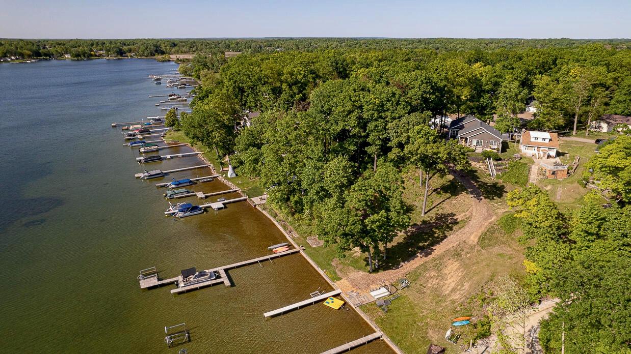 Canadian Lakes waterfront home. Immaculate throughoutinside and out with attention paid to every detail. Main floor living at its finest with optional deck patio areas with a 3 seasons room. Sandy beach with docking system and seawall. Westerly views for breathtaking sunsets. Upper level Guest Suite plus rustic lower level knotty pine decor with work out room, office, bar and fireplace area to relax by. Extensive outdoor living areas with newly designed/installed brick patio with firepit and seating areas. You will not find a more desirable setting or property in the area. Shop and compare, this is the ultimate property!