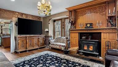 Experience luxury country living in this meticulously crafted Victorian Queen Anne home on 10 acres. Every detail, from the custom woodwork to the oak grand staircase and two turrets, reflects the owners’ craftsmanship and vision. The main level features a grand foyer, spacious living room with a wood burner fireplace, and a kitchen with granite countertops and cherry wood accents flowing into a large dining area with another fireplace. A wrap-around covered deck connects to the 3-car garage, while abundant windows offer natural light throughout. Upstairs, find three large bedrooms, including a master with dressing room and a luxurious jacuzzi garden wash area. Additional amenities include a parlor or optional fourth bedroom on the entry level, a breakfast nook, mudroom, and multiple outbuildings including a 6000 sq ft barn with heated lower level, garage, storage shed, and smokehouse. Set back with mature trees and a circular driveway, this property offers privacy and serene country views. Buyer must have a licensed agent physically present for showings.