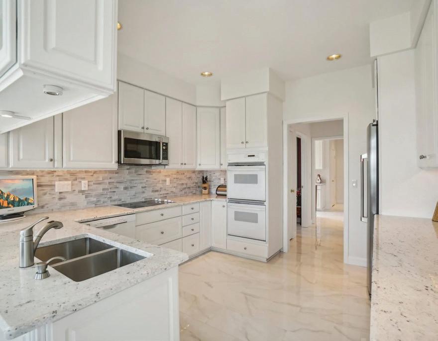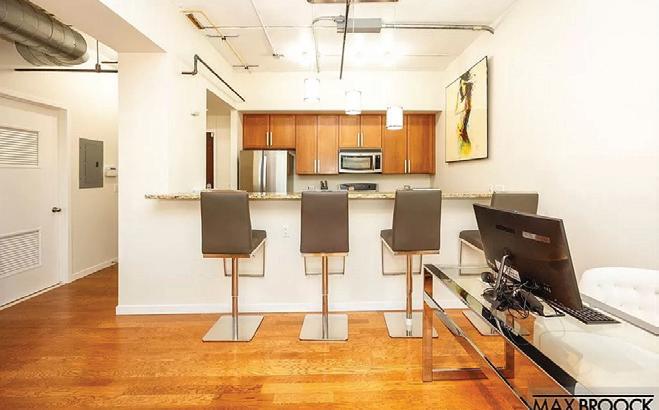 Modern Comforts: Gourmet kitchen with granite island bar and stainless steel appliances. Excellent sound insulation ensures peace and privacy.