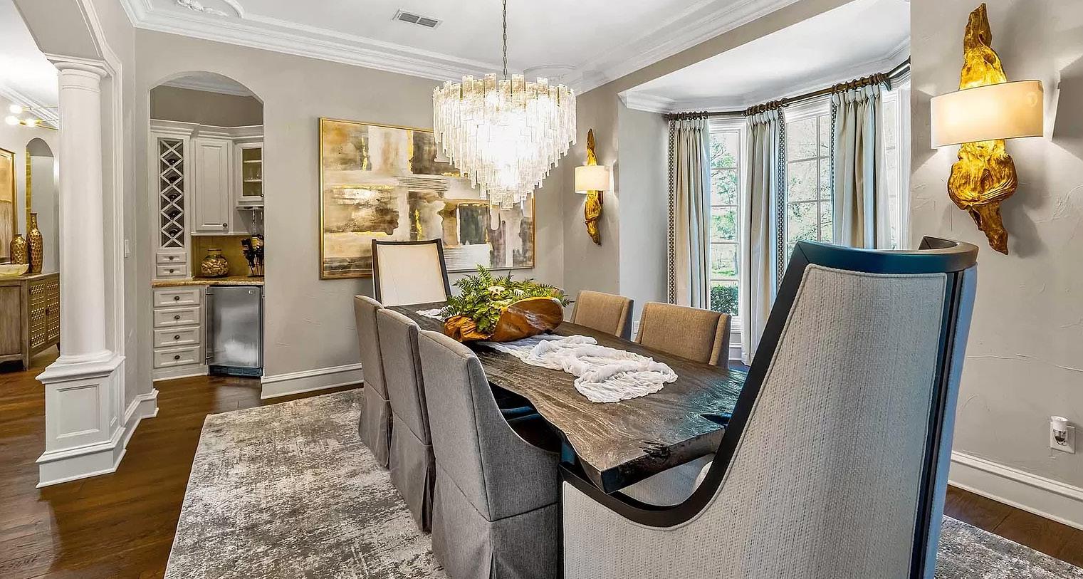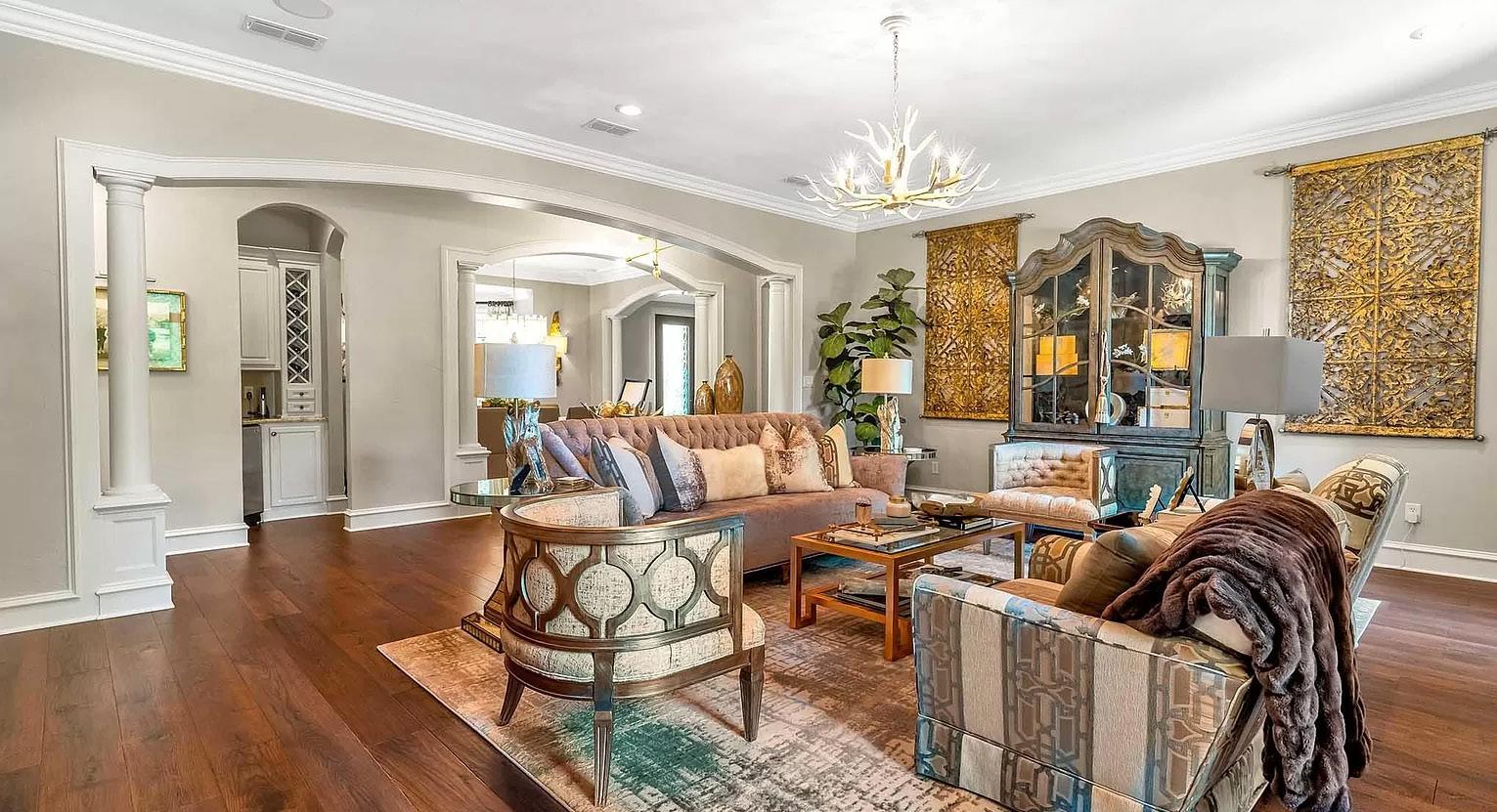 · Ceilings: High multi-level with elegant crown moldings