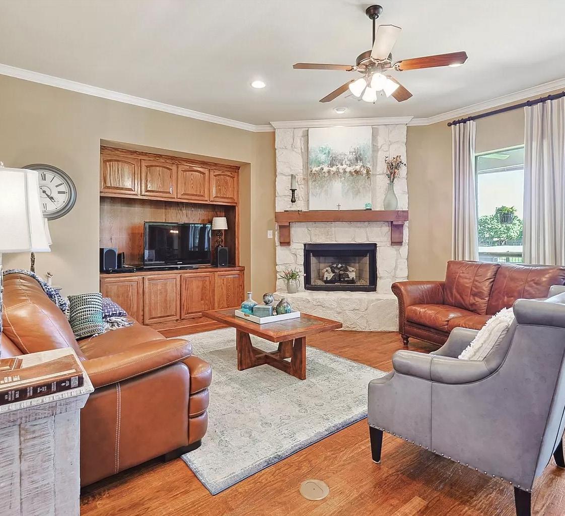 Welcome to luxury living in this custom-built ‘17 John Askew home, ideally situated minutes from downtown Burleson. With easy access to dining, shopping, & I35, & only 30 minutes from Fort Worth, convenience meets comfort. Step inside to discover hand-scraped hardwood floors & impeccable craftsmanship throughout. The chef’s kitchen boasts top-ofthe-line appliances & opens seamlessly to the spacious living area featuring a stone fireplace & built-in electric shades, perfect for entertaining. Outside, your private oasis awaits! Relax in the custom Pulliam pool or the hot tub, surrounded by a cabana w 3 hurricane doors for year-round enjoyment. For the car enthusiast, this residence is a dream come true! The 1st shop is fully insulated w HVAC, Bendpak car lift, epoxy flooring & a Quincy air compressor. The 2nd is insulated w commercial roll-up doors ideal for any project or hobbyist. Indulge in the lifestyle of luxury and functionality in this meticulously upgraded 6±AC property!