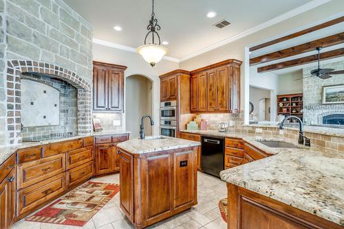 Step inside this light-filled single-story open floor plan including 5 beds, 5.1 baths, and spacious living areas highlighted by French stone fireplaces. The heart of this residence is a freshly remodeled luxury kitchen, and its statement piece is a 48” La Cornue range. The eat-in kitchen is perfect for stylish entertaining with its 9-foot black leathered marble island and wine room. The Dining area offers floor to ceiling views of the resort inspired pool with fountains. This showhouse features wood and stone floors throughout and custom and antique lighting. The primary Bedroom is a sanctuary with a dry sauna and a private veranda overlooking the pool and lush landscaping. Sonos surround sound is seamlessly integrated both inside and outside for the ultimate audio experience. This is the perfect backdrop for your art collection, plus a private guest suite, and the added delight of proximity to White Rock Lake.