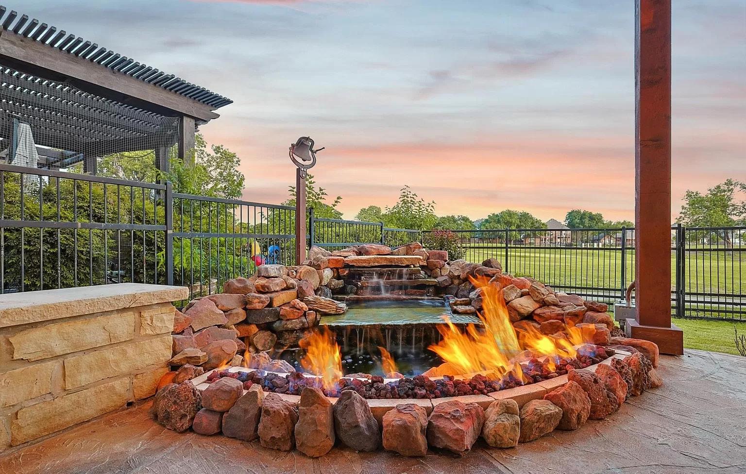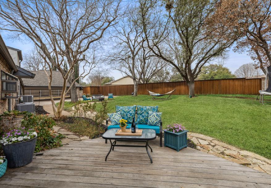Just imagine your tiki torches, pool, deck and decor! There is a large covered back patio with stairs descending down to your paradise, awaiting your pool landscape designs! Surrounded by mature trees, over an acre. High ceilings, lots of natural light, quartz in kitchen and baths, office with closet and double doors, formal dining, 4 bedrooms, 3 full baths, large breakfast area, open concept, luxurious primary bathroom feels like your own private spa, large walk-through rain shower, soaking tub, walk in closet- all this in one of the most charming neighborhoods in Aledo ISD.