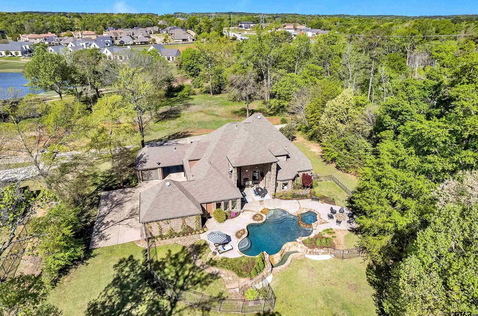 Stunning home located in gated Grande Estates. This amazing property boasts 2.6 acres of private property right in the heart of south Tyler. Enjoy the peace of your large backyard complete with pool, spa and fire pit while the view from your front porch overlooks the 13th hole at Hollytree Country Club. From the moment you walk into this home you will be blown away at its beauty. You are welcomed by a gorgeous home office complete with coffered ceilings custom built-ins; along with inviting formal dining and living rooms. The warmth of the home can be felt throughout the living room, kitchen and breakfast areas that overlook the resort-style backyard. The family will love the upstairs living and gamerooms which include flexibility for a 5th bedroom. Years of family memories are ready to be made in this wonderful home!