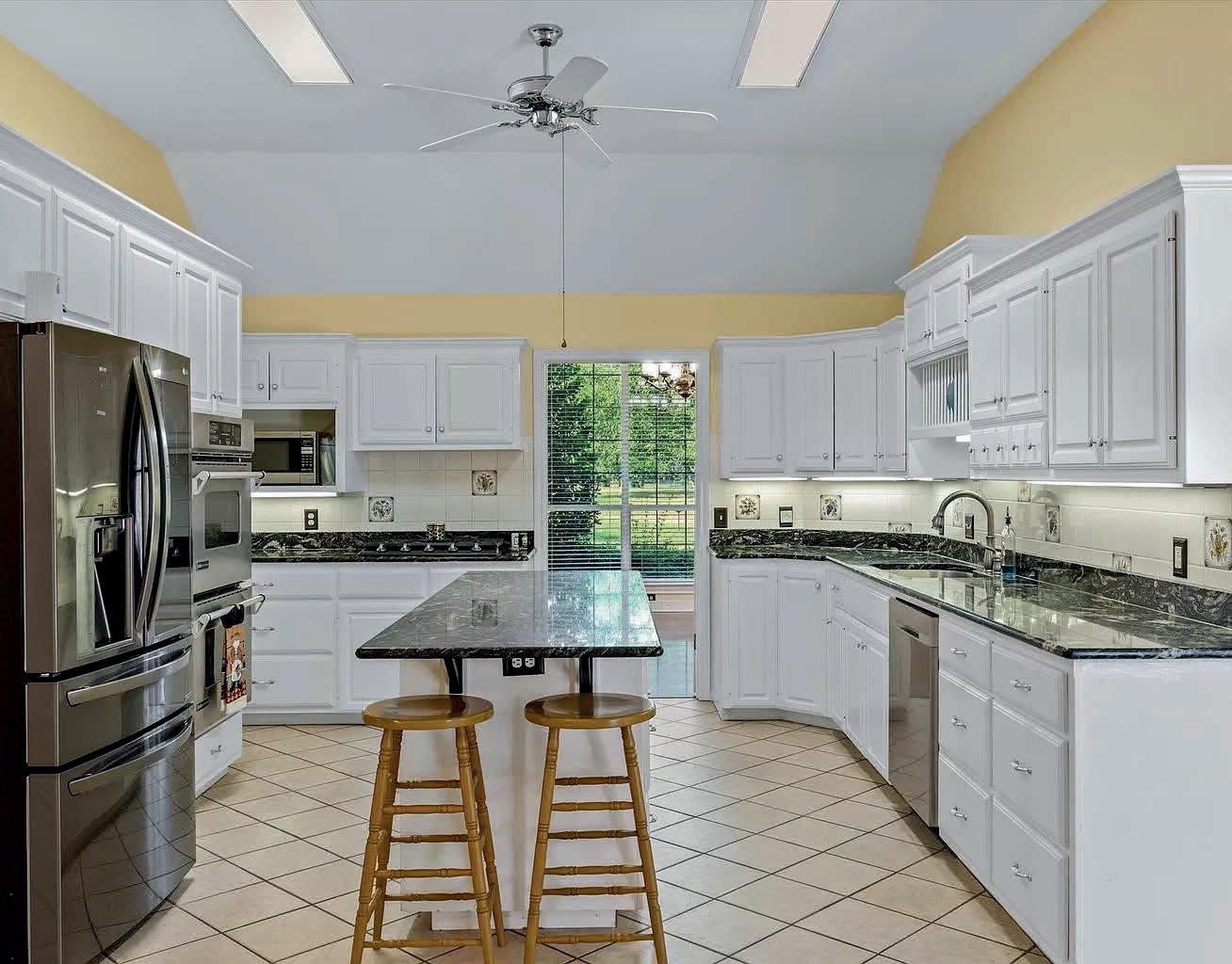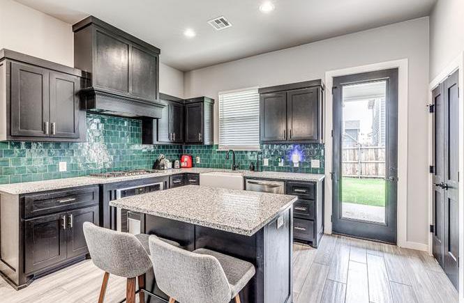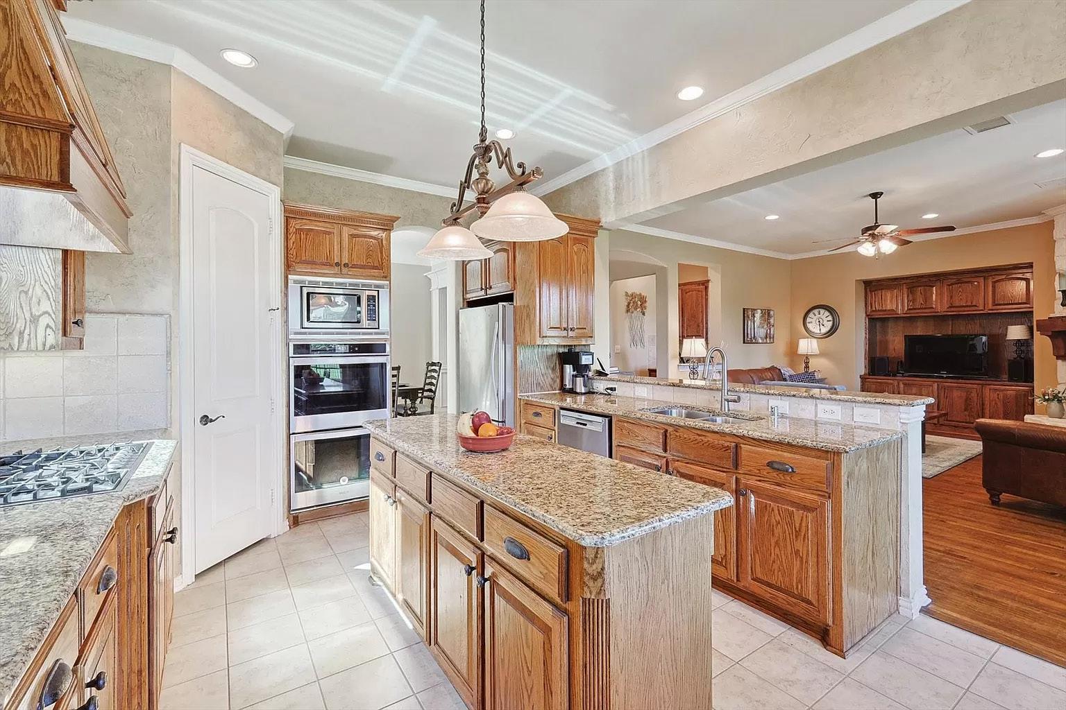 · Kitchen: Gourmet with granite countertops, custom cabinets with pull-outs, and all stainless-steel appliances convey with the home