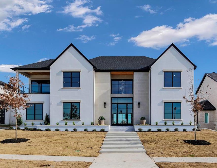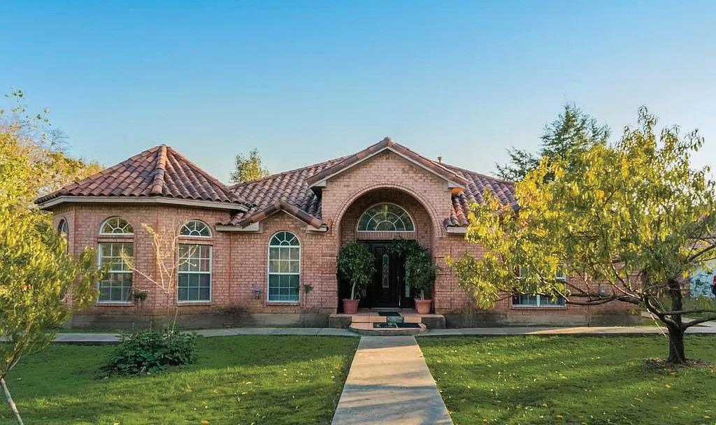 Welcome to your dream home in Frisco, nestled in the prestigious Chapel Creek community! This captivating custom Spanish Mediterranean home has clean, timeless elegance and the perfect floor plan, crafted by Citelli Homes in conjunction with TKO. It is built in the estate section of Chapel Creek on a sizeable lot with spectacular views of the creek and its many mature trees. It promises luxury and comfort for the discerning buyer. As you approach the serene flagstone entry to custom black iron doors, you will notice a private entrance Casita with separate entrance on your right. Inside you will find ample square footage with built-ins and a vaulted ceiling, as well as a full bathroom with shower. This is an invaluable space that can function as a truly private work-from-home office, guest house, or mother in-law suite. Stepping into the grand foyer you will immediately notice the vaulted ceiling with exquisite planked millwork juxtaposed against the light and airy off-white clean walls. You will also notice the house is built around a courtyard with stone and turf and an exquisite mature tree.