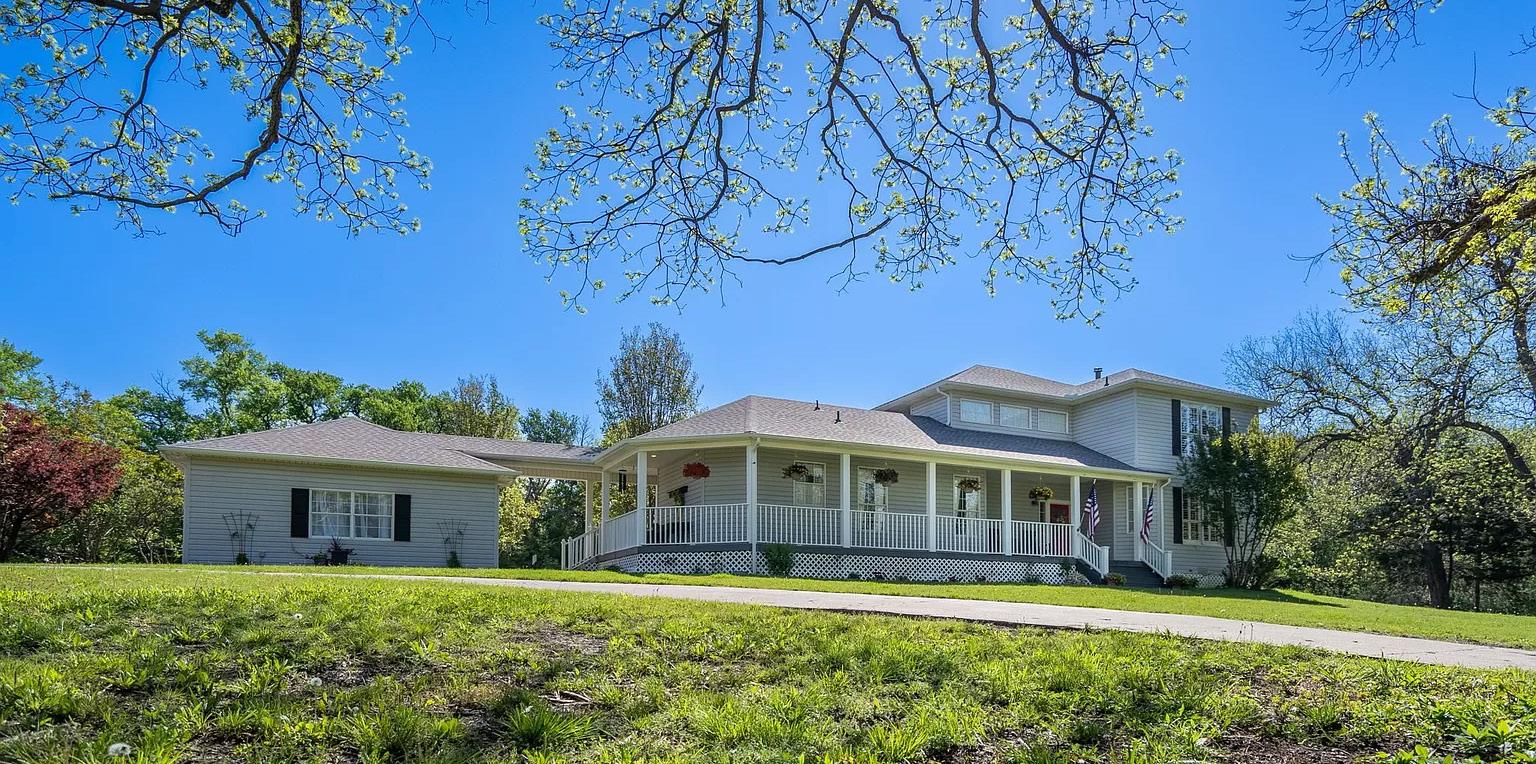 Large two story farm house style with wrap around porch with 1/2 of the porch screened in for those spring evenings with no bugs. One large living room with the porch on all three sides with lots of windows. Fenced yard with storm cellar just steps away. Concrete drive all the way to the road. The two large shop and rv storage building are conveniently located to the drive and house. Property like this don’t come around very often.
