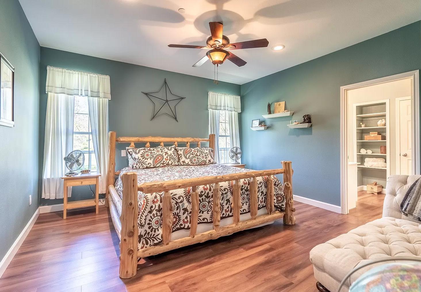 Only 1 mile from Walnut Creek Marina! The 3 bedroom, 3 bathroom home has an open-concept layout. The converted garage comes with a full set of commercial quality workout equipment. Step outside onto the huge private covered patio and enjoy the beautiful view or unwind after a day on the water or tending your plants in the greenhouse. The patio includes a lighted hot tub and outdoor shower to relax and refresh after a long hard day. The 1500 sq ft insulated workshop has two 12’ lean-tos providing ample space for storing big equipment. It includes shelving, 2 insulated roll up doors, and trolly hoist. A 560 sq ft insulated workshop provides ample space for your smaller equipment. The property is fully fenced and includes corrals, squeeze chutes, and a barn to accommodate various livestock. The property also includes various outbuildings for storage. The house comes fully furnished, ensuring a seamless move-in experience.
