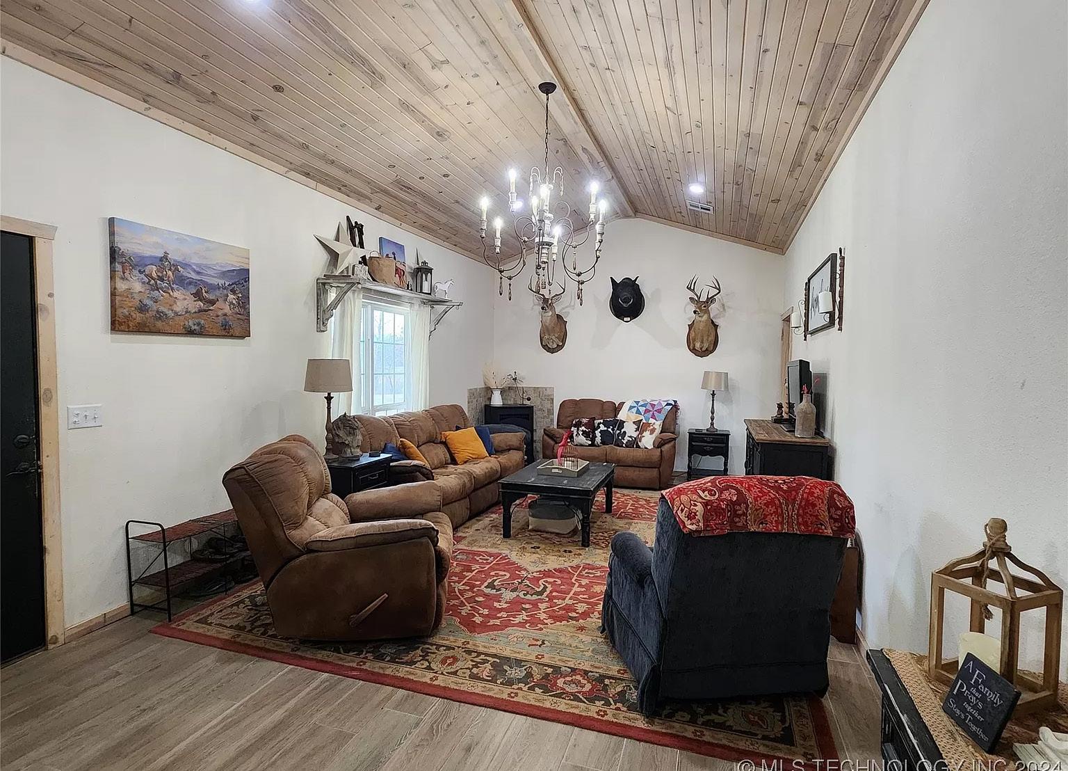 Boasting a seamless blend of luxury, comfort, and rustic allure, the open floor plan welcomes you with high ceilings, gleaming ceramic tile, and abundant natural light. 2019 Custom build, in a one of a kind neighborhood! Indulge your culinary passions in the chef’s dream kitchen, equipped with high-end appliances, ample countertop space, and elegant cabinetry. The adjacent spacious dining area is perfect for hosting gatherings. Four generously sized bedrooms, including a master suite with ensuite bathroom and walk-in closet, o er a private retreat for family and guests. Outside, a large workshop caters to DIY projects or storage needs, while the 40-acre property provides an idyllic backdrop for outdoor activities and stunning panoramic views. This haven of tranquility embraces rural living, yet conveniently connects to local amenities.