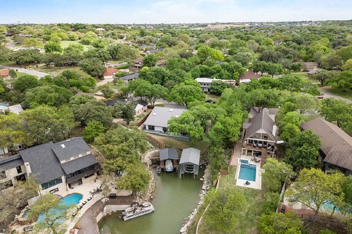 This exquisite 4 bdr/3 bath/3 car garage home surrounded by nature and wildlife is located on a quiet cul-de-sac in the prestigious Pinnacle Club golf course community on Cedar Creek Lake. Intricate real wood floor and tile designs add to the beautiful high-end finishes of this custom crafted one-of-a-kind home. Amenities include: New roof-May 2024, wine cellar with hidden storage, tankless water heaters, 3 HVAC systems, foam insulation, huge owners suite downstairs has a spacious walkin closet with built-ins and jacuzzi tub/walk-in shower, media room upstairs, 10’ ceilings, outdoor patio with gas fireplace, hand carved beams, solid core 8’ interior doors, stereo system inside & outside, KitchenAid appliances, granite countertops, 6 burner gas stovetop, 3+golf cart garage. Pinnacle Club Property Owners receive a social membership - access to the restaurant & bar, pool, tennis court, workout facility & playground. Additional Golf membership options are also available.