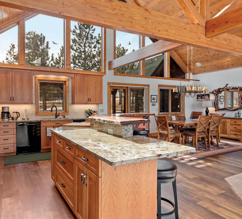 spaces together, establishing a harmonious flow that enhances the sense of unity and spaciousness. Adjacent to the living area, the kitchen maintains this open and airy ambiance. A chef’s delight, it offers the perfect setting for culinary creativity while promoting social interaction. With a layout that encourages movement and conversation, the kitchen area serves as an engaging hub for family gatherings, casual meals, and entertaining guests. Even while preparing meals, one can enjoy the picturesque views or engage in the activities happening in the living room, underlining the seamless connection between the spaces. The master bedroom is a sanctuary of peace, providing the perfect space to retreat and recharge after a long day. The room’s soothing color palette, coupled with ample natural light filtering through expansive windows, evokes a warm atmosphere. The room’s generous dimensions offer plenty of space for a king-sized bedroom suite.