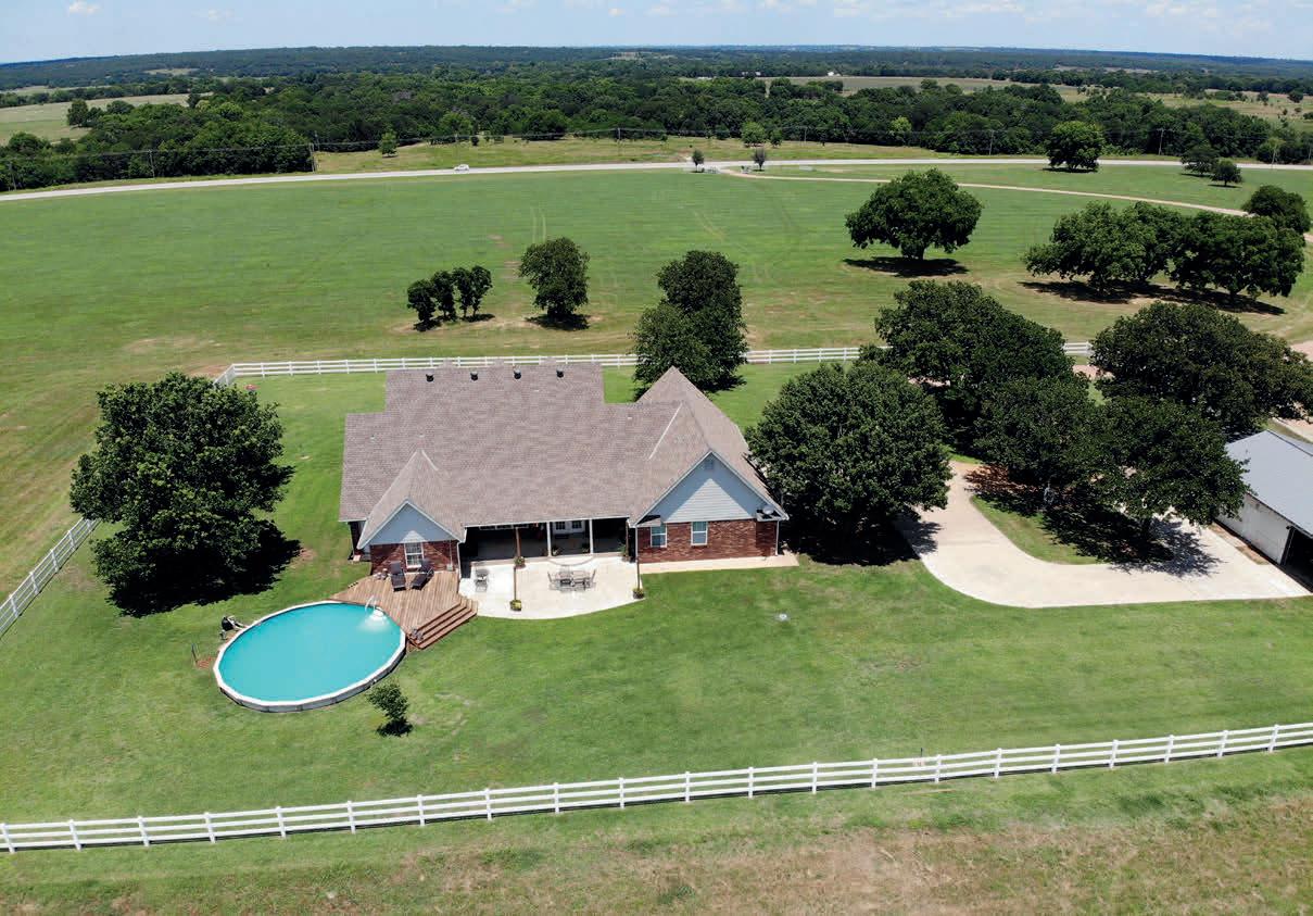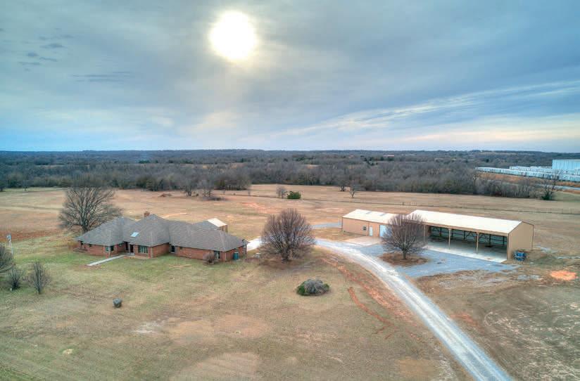 weight scales. The ranch house (built in 1970) features 1,300 sq ft +/- of living space, rural water, total electric, 3 bedrooms, 1 bath, 2 car carport, 5-year-old roof, shop with rollout door, working corral with water and small shed. Of the 8 ponds, 2 ponds are 3 ac +/-, 1 pond is 1.5 ac +/-, and remaining ponds are 1 acre or less. Tons of wildlife such as deer, quail, ducks & geese for hunting as well as stocked ponds for fishing. In addition to Pecan trees, there are several mature variations of Oak, Persimmon, Redbud, and Elm trees found throughout the property. Come see the Spectacular 360-degree view that surrounds this stunning property. Located 1 1/2 hr south from OKC, 2 hr north of the Dallas/ Ft. Worth area, 7 miles from Crossbar Ranch, 11 miles from Turner Falls, 13 miles from Falls Creek, 18 miles from Lake of the Arbuckle’s, with Lake Texhoma & Murray close by. Tons of sites to see just minutes away! Reserved items to stay with seller include: windmill in dining room, old family door on barn door railing, sign at entry (just sign rail casing stays) and 4 plants in front flower bed. Offered at $1,995,000