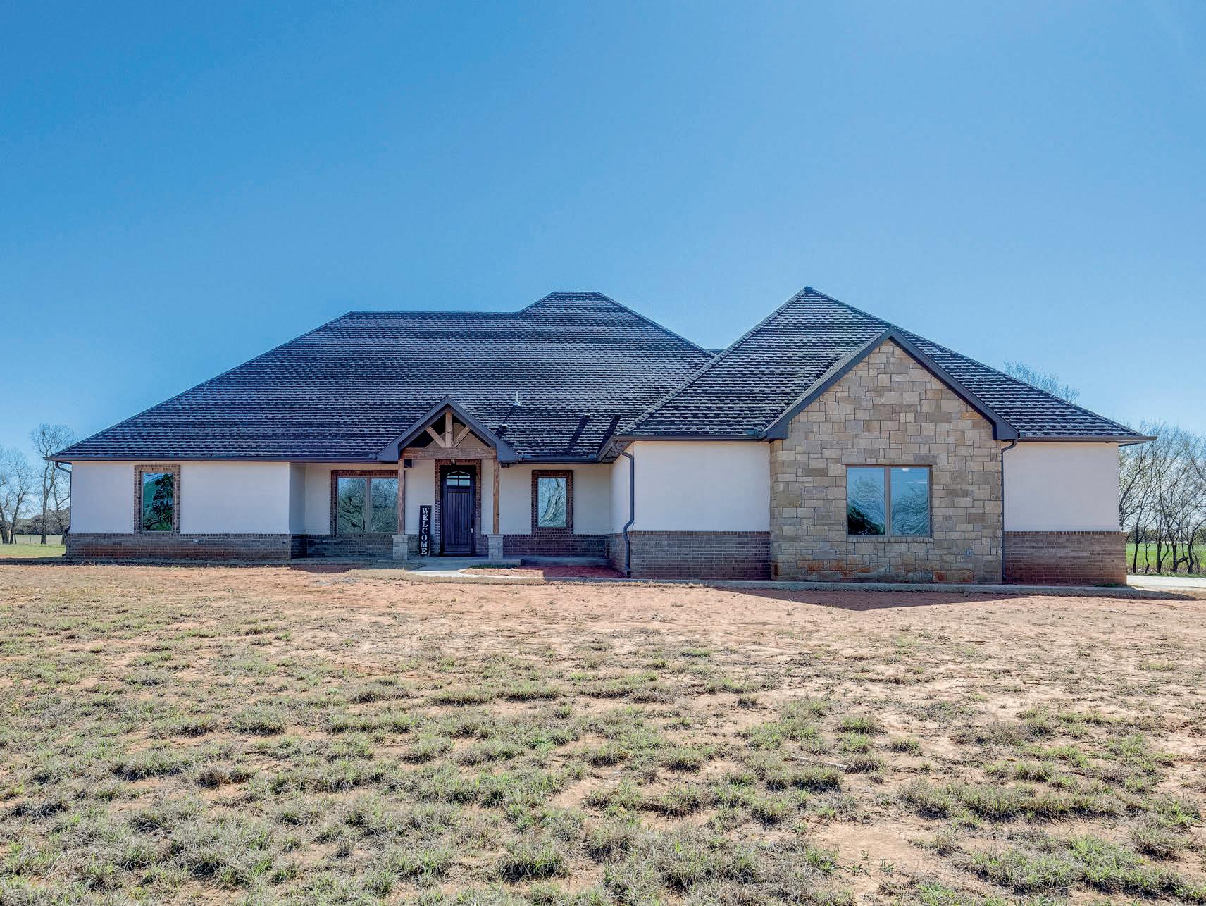 This 300-acre ranch offers a Stunning Brick and stone 2687 sq ft 3-2.1-2 home. The living room is very spacious, has scraped wood floors, custom crown molding and custom stone WBFP fireplace The kitchen has custom cabinets, stainless appliances, granite counters and breakfast bar, open to living area. The primary bedroom is huge with plenty of windows providing views of the ranch, and bath featuring a walk-in closet, loads of storage, separate tub and shower. The split bedroom design features two spacious guest bedrooms. Just off the living room is a beautiful covered porch, ideal for entertaining guests or just admiring the beauty of the land. Next to the home is a premium built equipment barn and workshop, fully insulated, concrete floors, and electric. There is an oversized 2 car garage. This is a working cattle ranch with improved pastures, good perimeter, and cross fencing. Ponds in every pasture. Ranch produces good hay crop, and this is a self-sufficient ranching operation.