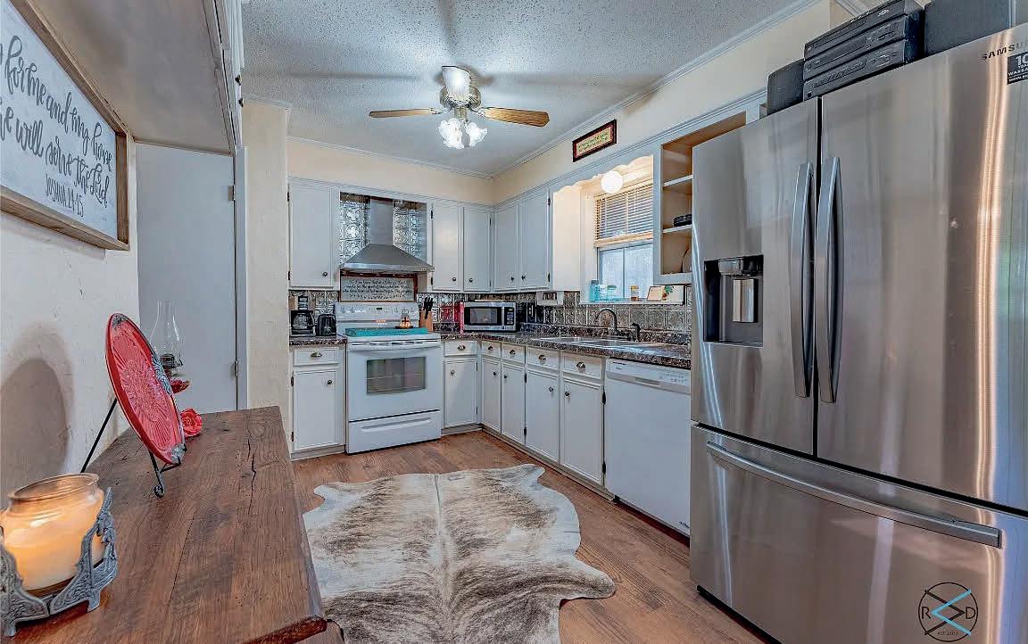 Welcome to 307 Black Road in beautiful Petrolia, TX. Nestled amidst 5.83 acres of peaceful rural land, this incredible property offers the best of tranquil living without sacrificing convenience. Located just 16 minutes from downtown Wichita Falls, this two-bedroom, threebathroom retreat provides seclusion without isolation. Step outside onto the extensive 850sqft covered porch, wrapping around the northeast side of the home, where you can enjoy cool breezes and watch sunsets over your property. Directly adjacent to the dining room, an additional patio on the south side of the property provides an excellent extension to the living space. With its open layout, is also an ideal spot for grilling, making it the perfect venue for summertime barbecues or a quiet evening meal outside. As you step inside, you are welcomed by an expansive open-concept layout that masterfully blends the living room and kitchen. The continuous stained concrete floors weave these