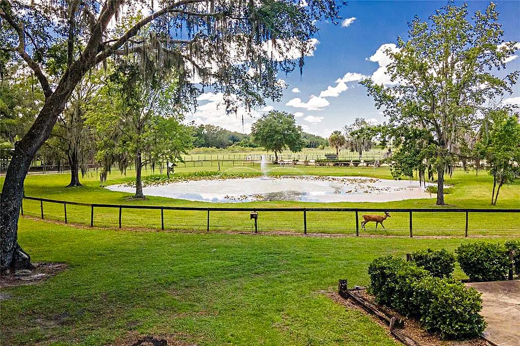 crystal chandeliers adorn this impressive estate home with lake frontage, swimming pool, boat dock with lift and boat storage; and extensive/lighted landscaping and entertainment areas. The home includes soaring ceilings throughout; a library, workout/massage room and massive third floor storage rooms to store your seasonal decorations. Rolling hills lead to the 1700 sq ft, three bedroom, two bath lakefront guest cottage. This farm was designed using first-class construction for the efficient management of one of the finest horse breeding programs in the country, as well as the stunning architecture of the former Silverleaf Horse Farm with grand cupolas throughout the farm. The absolutely magnificent stallion barn includes a grooming station, office, observation deck, laboratory, bathroom, small 42’ x 48” indoor arena with shock absorbing footing for mild exercise and viewing; large equipment room, wash rack and entertainment areas. Each stall is built with concrete block covered with 1/2 wood walls for safety and noise reduction. It is just a short walk to the equally impressive mare barn with ten stalls, includes a lab, office, kitchenette, impressive billiards room, tack and feed rooms, 1.5 bathrooms, grooming station and storage area. The two spacious paddocks provide ample space for grazing and training. This is the opportunity to purchase your part of equine history! The estate is located in the newly developed Silverleaf Hills Estates, a gated 768+ acre equine community of spring fed lakes, majestic oaks, rolling hills and picturesque homesites. Only 90 minutes to the Tampa or Orlando Airport and only minutes to the shopping, medical, and entertainment in The Villages or Ocala, Florida. Call for your appointment and tour of this estate.