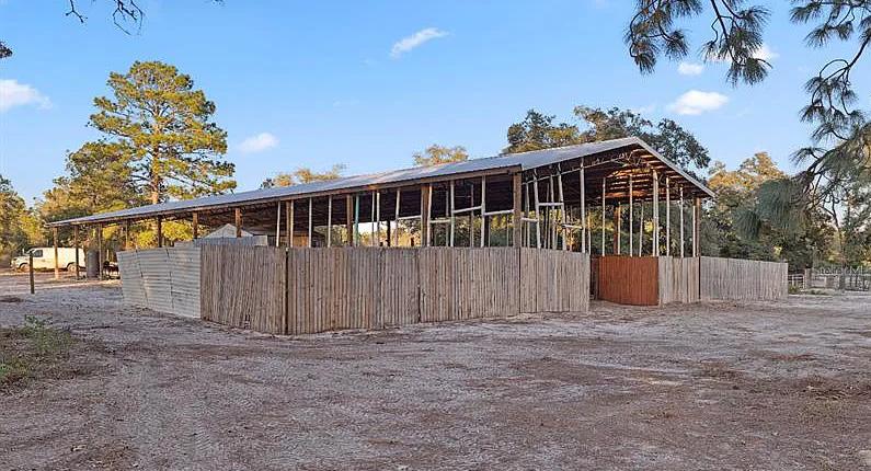 COUNTRY LIVING BUT ONLY MINUTES FROM EVERYTHING. This MODERN CONTEMPORARY FARMHOUSE perfectly placed on 5 ACRES is only 2 years young and is the perfect place to call home. From the moment you pull up through the white picket fence you are captivated by the pure beauty of nature. As you walk up to the front door, you will fall in love with the Semi Wrap Around Porch which will be one of your favorite places your estate offers. Upon opening the front door your heart will know it is home. From the Open Feel Concept to the Cathedral Ceilings and the Modern Contemporary Decor, THIS HOME HAS BEEN PUT TOGETHER FOR YOU. All of the custom detail has been meticulously thought out and perfectly executed. The common areas have plenty of space to enjoy without being too far from everything. The COMPLETELY UPGRADED CHEF’S KITCHEN offers Tons of Cabinet Space, 2 Full Size Sinks, Pot Filler over the stove, Plenty of Counter Prep Space and a Complete Set of Stainless Steel Appliance. All faucet fixtures are Moen. The Kitchen Island that separates the Living Area and Kitchen is the perfect space to Gather Around and Create New Memories for years to come. The Owners Suite is on once side of the home and offers Direct Access to Huge Lani. The Owners Bath offers a Custom Dual Sink Vanity, Custom Walk-in Shower with Dual Shower Heads and Seamless Glass Enclosure. The large walk-in closet closet is also completely fit with Custom Shelving for your convenience. On the opposite side of the home you will have 3 additional bedrooms and 2 additional bathrooms. This estate also offers an Office with adjoining bath and Large Laundry Room with Wash Sink and Folding Counter. NOW, LETS NOT FORGET THIS HOME IS NESTLED ON 5 ACRES so if outdoor living is on your list then this is the home for you. The HUGE ENCLOSED LANAI goes the full width of the home and has been custom fit with FINISHED OAK CEILINGS and also has lots of multi-use areas. The Lanai is fit with TV & Cable Connections, Ceiling Fans and has been pre-plumbed for your Summer Kitchen. The lanai has direct access to the Garage that also have a Built-In Office and additional 1/2 Bath. For your convenience the 5 acre grounds have already been sectioned off with fencing so you can keep all of your livestock separated. The Barn also has a New Roof and is large enough to fit all of your needs or you can convert it into stables if needed. In addition to the 2 Car Garage attached to the home there is a 3 Car Carport. THERE IS ALSO AN ABOVE GROUND POOL for your enjoyment as well. YOU WILL HAVE NO WORRIES FOR YEARS TO COME WITH THIS HOME AS IT IS ALL BRAND NEW and HAS BEEN DONE FOR YOU!. Call today for your private tour & more information.