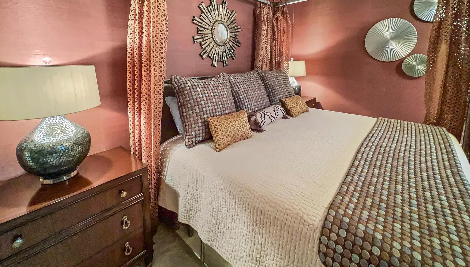 Penthouses at the prestigious VillaRiva riverfront condominium building in Historic Riverside rarely come available. There are only two – two story Penthouses at VillaRiva, and 1203 is one. Imagine waking up every morning on the riverfront terrace with a hot cup of java to the sunrise in the east, and returning to the same spot in the evening to relax while enjoying your favorite libation to watch the colorful sunsets. This custom finished condominium home captures the most discernible eye, and addresses every room with decorator details to impress. From the 12th Floor Lobby you share with one neighbor, and enter the beautiful cut glass front door through the foyer, you are in awe of the stunning views of the river sparkling with the sunlight dancing on the water. It takes your breath away. If anything can tear your attention away from the expansive riverfront view, it’s the beautiful finishes and touches throughout this stunning condominium. From the dramatic 20+ foot hand painted ceiling, to the one of a kind ‘tile’ hand painted stair risers and