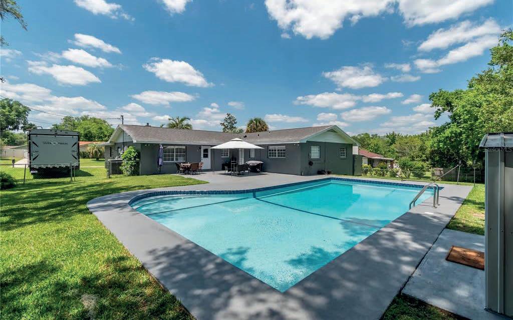 Venture outdoors, where the allure of leisure beckons with open arms. Immerse yourself in the luxury of a large saltwater pool enveloped by a screen enclosure, offering the perfect setting for endless hours of relaxation and rejuvenation. Adjacent, an outdoor kitchen awaits, promising culinary adventures amidst the backdrop of lush greenery and tranquility. This property presents an unparalleled opportunity for those with a passion for equestrian pursuits. A 1,536-square-foot barn/stables with a tack room stands ready to accommodate your equine companions while sprawling pastures invite leisurely rides and moments of connection with nature.