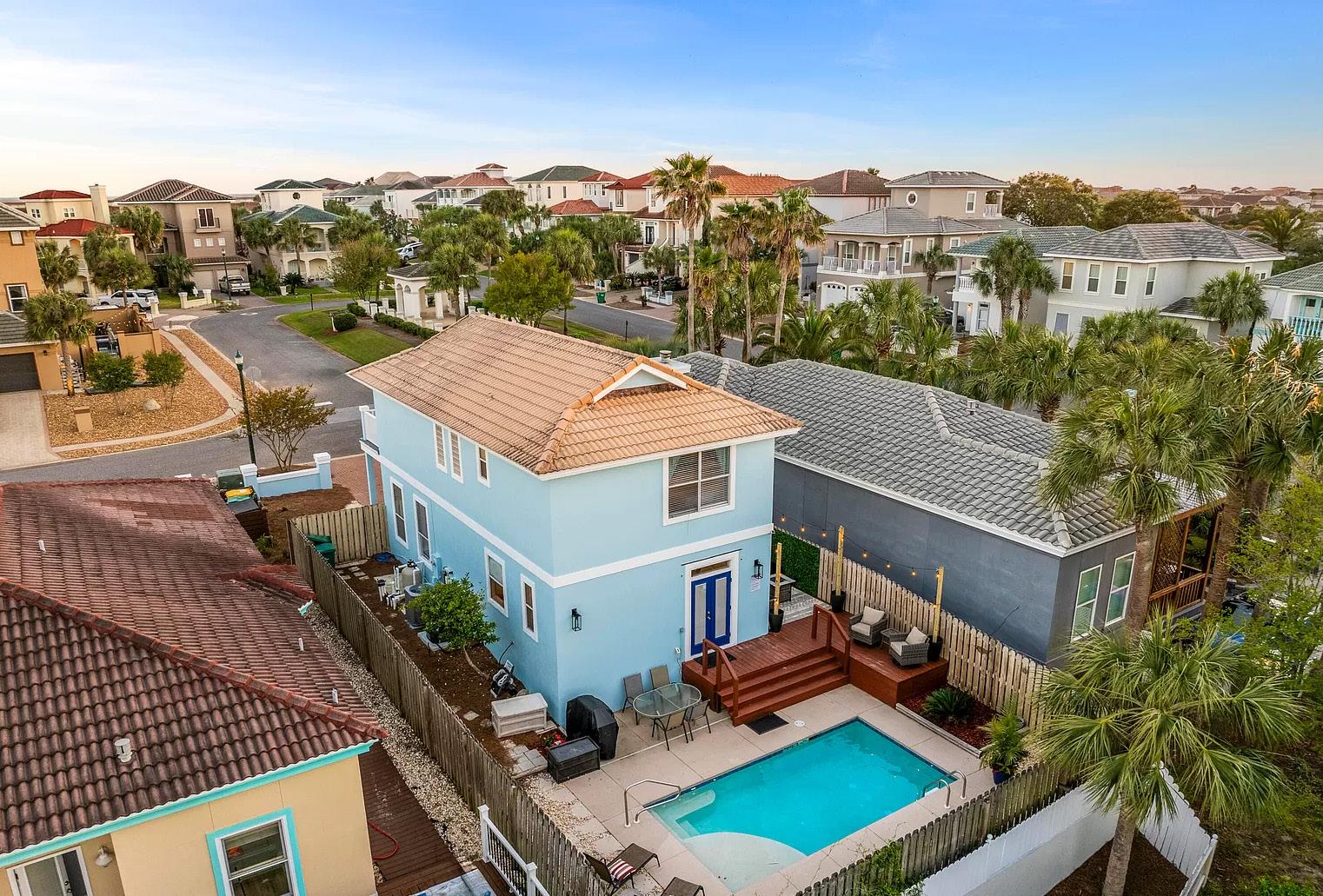The very best of Beach lifestyle while creating an amazing investment opportunity for buyers. The ‘’Club’’ at the heart of the community offers the 425 foot long lazy river, the oversize oasis pool features two giant tower water slides, the poolside bar and grill where you can order a Cheeseburger in Paradise and a margarita all while enjoying music, sun and fun. A short stroll from your home to 580 feet of dedicated beachfront offering a full suite of beach services including beach chairs and umbrellas, food service to complement the sparkling emerald green waters and soft sandy beaches! Sunsets in from this beach will blow your mind. In 2025 you will also be able to enjoy the full-service restaurant, fitness center, arcade and more! This home is located in one of the best lots within the development that offers backyard privacy for soaking in the six-person hot tub or simply enjoying a beach view and the sunsets that can be seen from the second story covered deck. The open concept floor plan is perfect for entertaining with tons of natural light, bright beachy decor and color theme along with the gourmet kitchen featuring a giant oversize quartz island perfect for family gathering. You will enjoy the roomy downstairs main bedroom with luxury on suite bath. Upstairs you will find two more bedrooms with on suite baths and two more bedrooms with a jack & jill bath. No detail has been spared in the decor down to the bedding with embossed parrot sheets on every bed. Owner financing available.