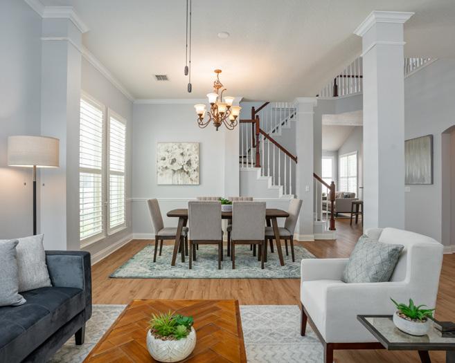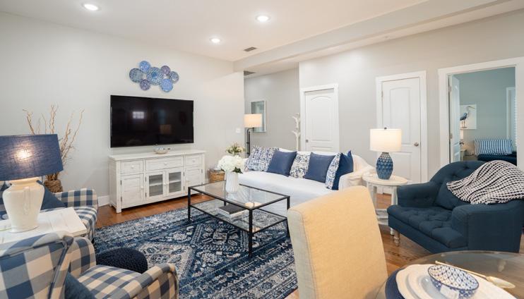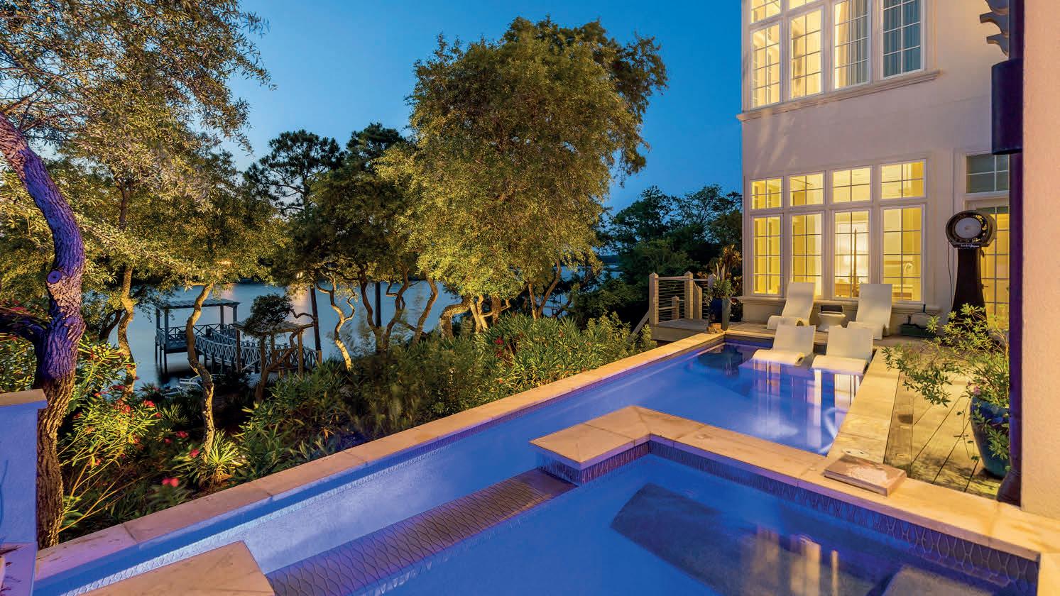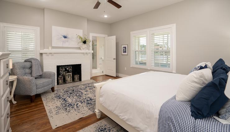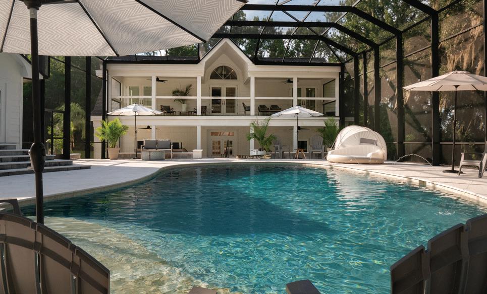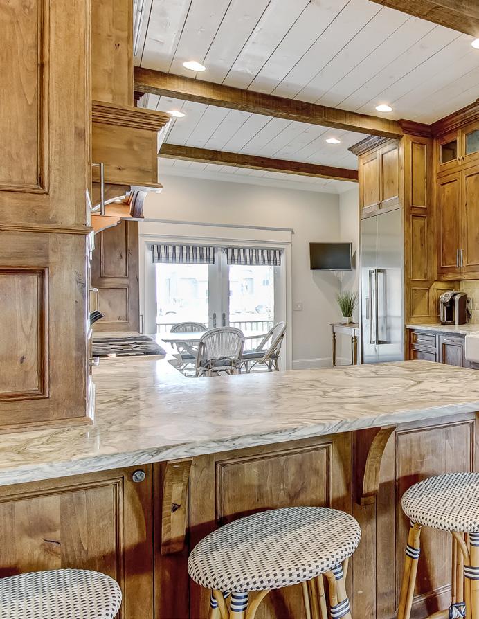 This elegant home offers ample privacy as a magnificent full-time residence, second home or luxury rental. Built in 2015 by Benecki Homes, it features 11-ft ceilings and peacock paver flooring on the main level, an arched driveway entrance leading past a spectacular courtyard and a private patio off the master bedroom complete with a water feature to a generous air conditioned twocar garage beneath the separate carriage house. Mediterranean influences, including Venetian plaster, metalwork balconies, a recessed front entrance and arched mahogany doorways overlooking the courtyard and pool, highlight this home. The interior decor is by Melanie Turner Interiors and was featured in Atlanta Homes and Lifestyle magazine. The chef’s kitchen is the hub of the living space and is amply equipped for entertaining on a grand scale.
