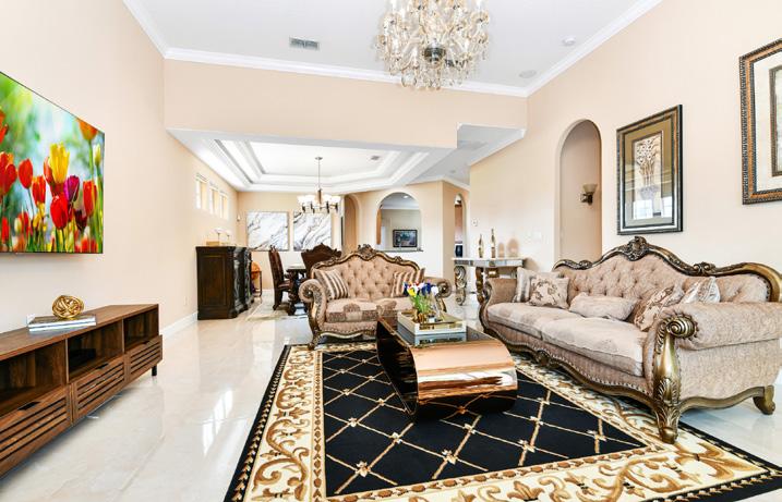 • This 5,092SF residence features a spacious floor plan, high ceilings, double crown molding, 5 or 6 bedrooms and 5 bathrooms. The open foyer offers views of the living room, 20’ ceilings, pool/lanai, dining room, stair case & cat walk.