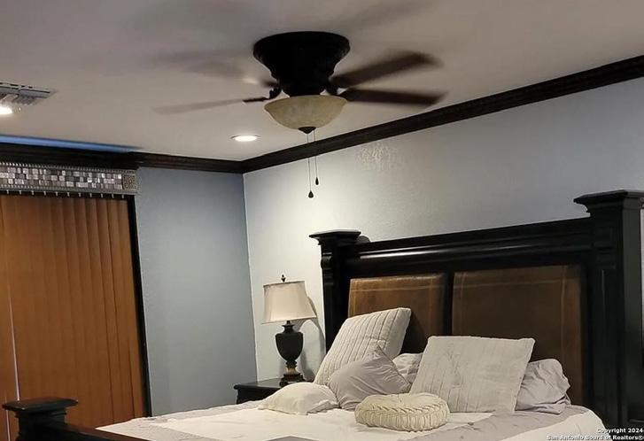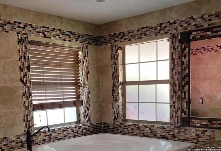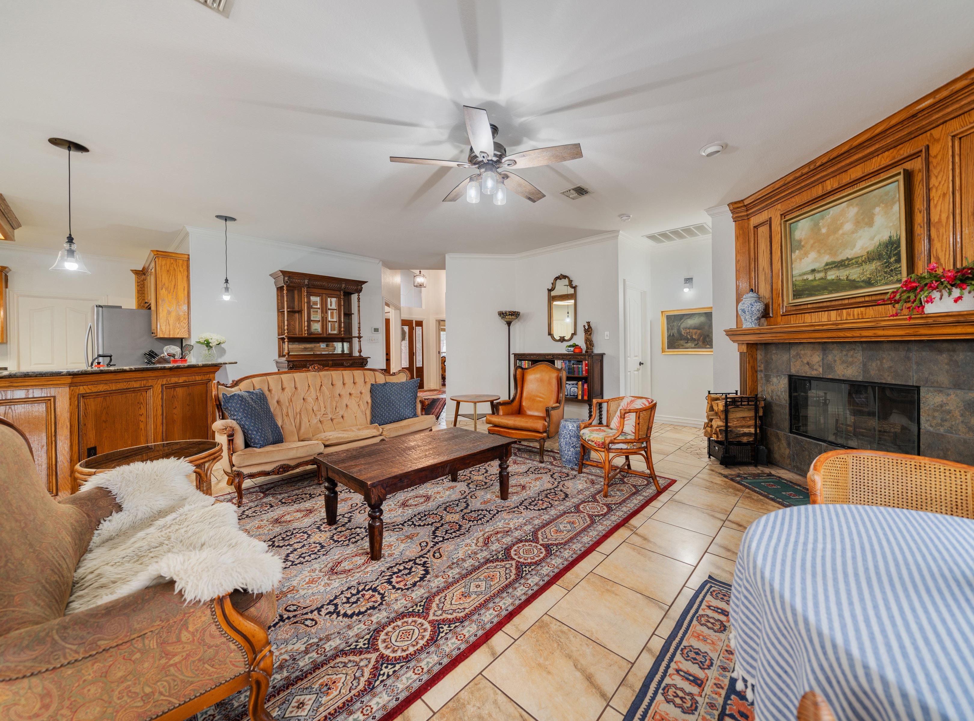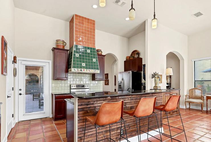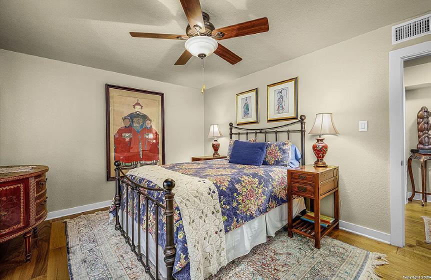 This stunning Mediterranean-style home in Terrell Hills, designed by Mac Chesney, features a striking Italian tile roof and is set on a .54-acre lot with beautiful landscaping and sandstone walls. The 7,490 sq. ft. residence is perfect for entertaining and family living, seamlessly connecting the interior to a spectacular backyard with two loggias, an outdoor kitchen, exquisite gardens, and a pool area. Inside, you’ll find high ceilings, a large living room with a fireplace and bar, wine closets, and a dining room with a custom-painted ceiling. The chef’s kitchen boasts ample cabinets and natural light, and opens to a family room and spacious study. This home includes 5 bedrooms, 5 full bathrooms, and 2 half baths, with two primary suites on the first floor for easy access. Additional features include a game room, multiple balconies with city views, and exceptional storage solutions. Located in the esteemed Alamo Heights school district, this meticulously maintained property is a true masterpiece.