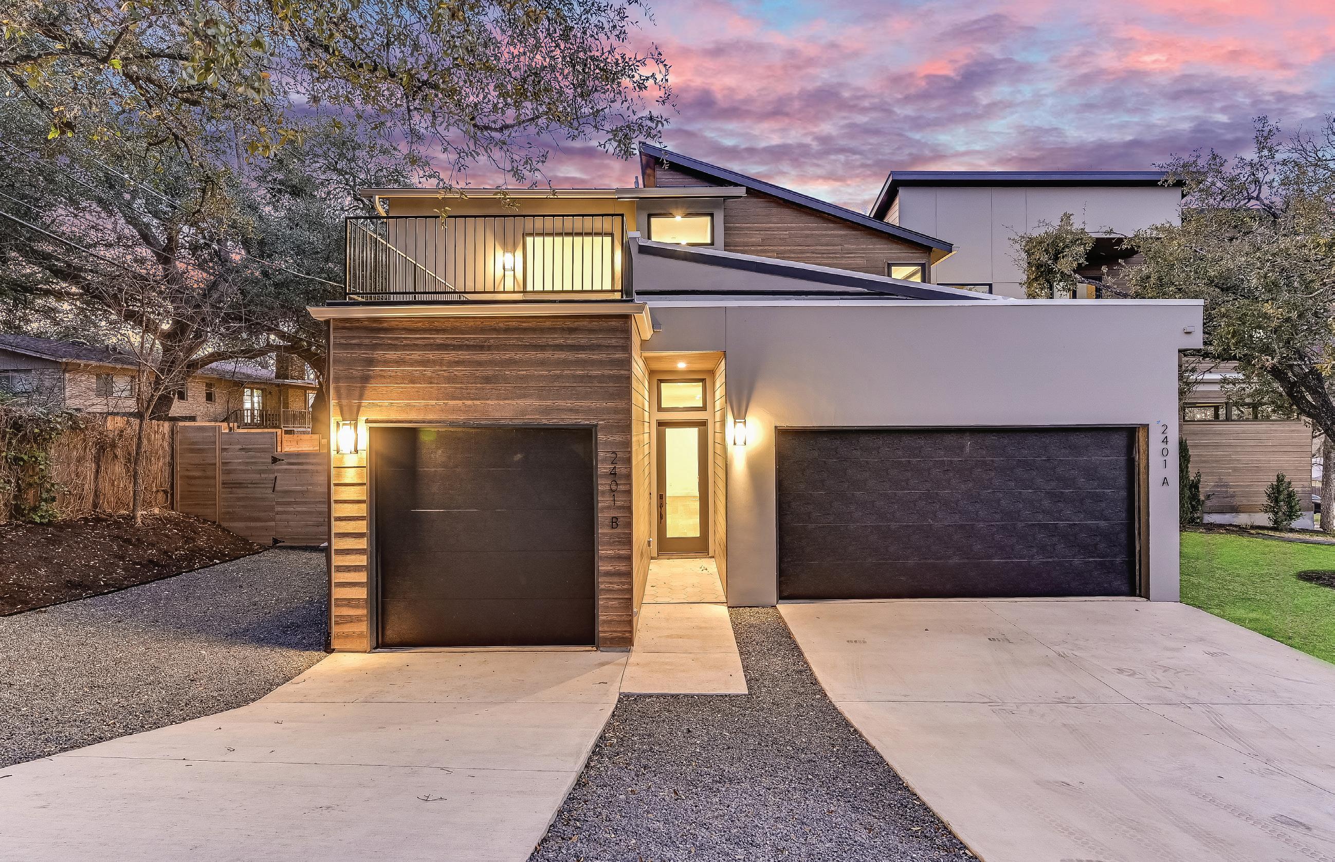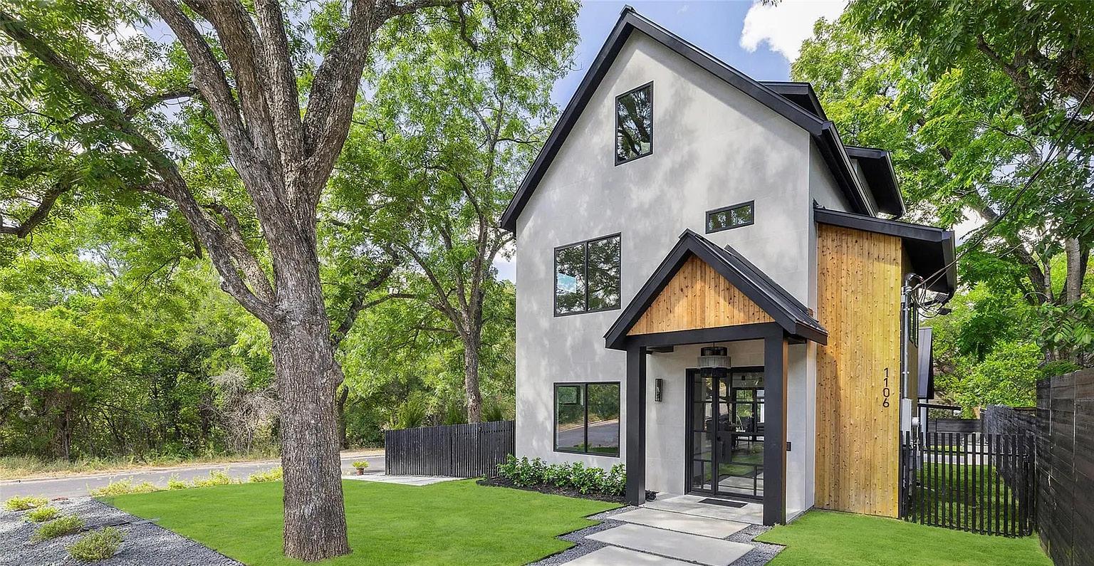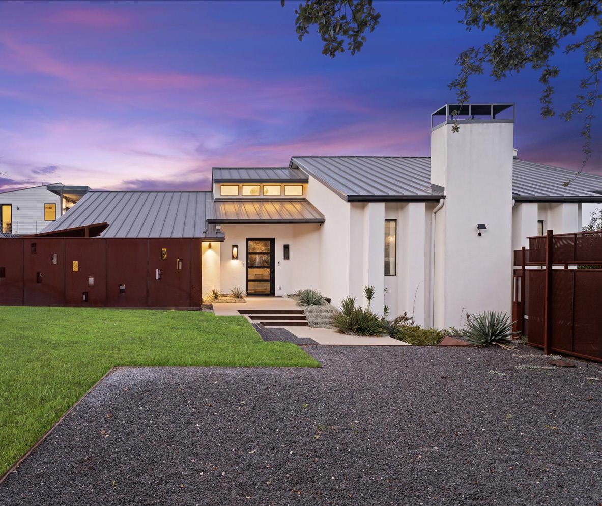 This stunning Bouldin Creek home masterfully blends Austin’s charm with contemporary elegance. Its striking façade features an innovative mix of Dekton stone, warm cedar, and smooth stucco, setting the tone for sophisticated living.